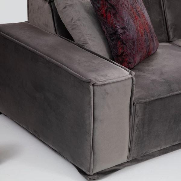 2-zitsbank met frame van beukenhout en spaanplaat, 100% polyester stof, schuimzitting met 28 DNS zacht grijs schuim, 24 DNS veren en veer voor ondersteuning. Inclusief 2 kussens. Grijze kleur met zwarte houten poten