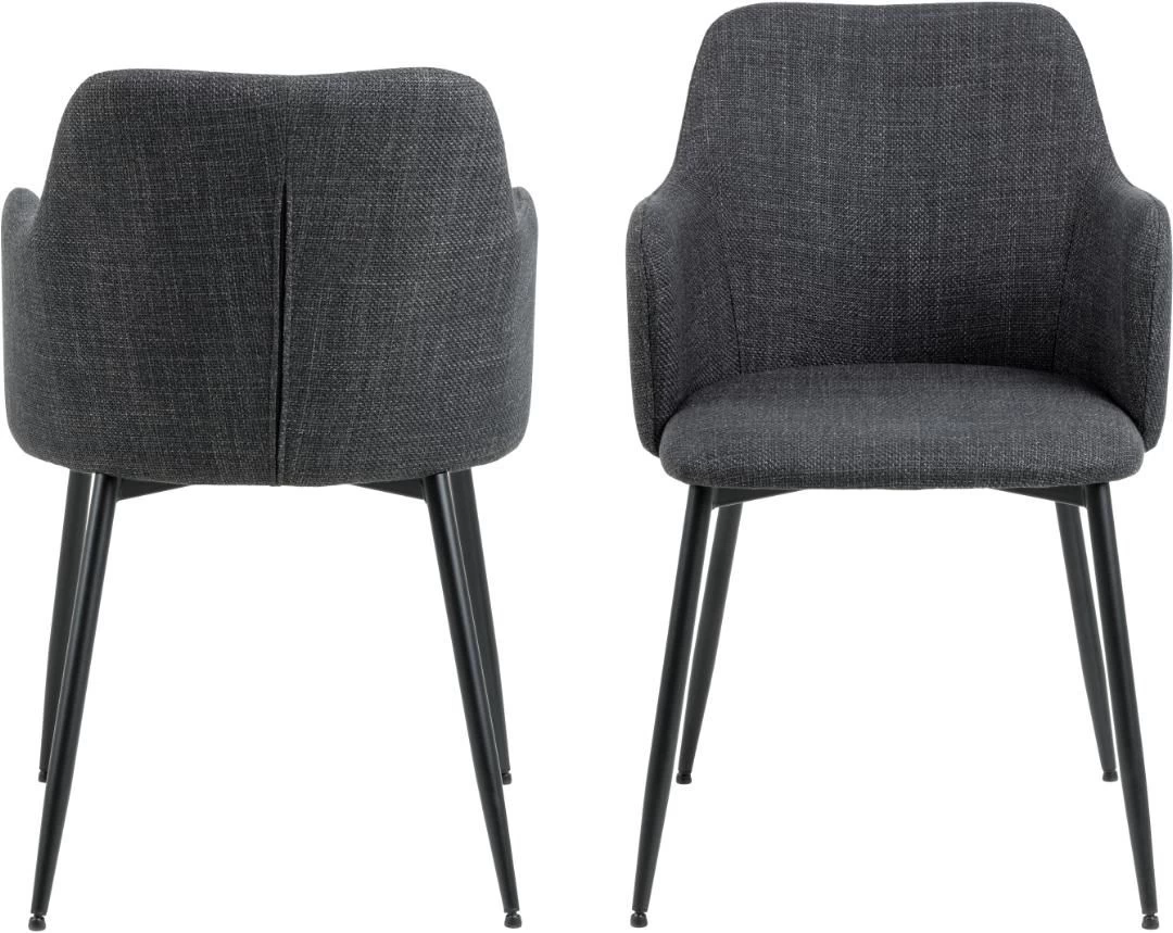 Maak het jezelf comfortabel met eetkamerstoel Ilsa. Deze eetkamerstoel is voorzien van armleuningen, waarop je je armen tijdens de maaltijd kunt laten rusten. Deze stoel heeft daarnaast ook een 39 cm hoge rugleuning, wat je zithouding dan weer ten goede komt. De stoel is bekleed met donkergrijze Baselstof en heeft poten uit zwart gepoedercoat metaal. Eetkamerstoel Ilsa wordt per 2 verkocht en is ook verkrijgbaar met een beige bekleding.