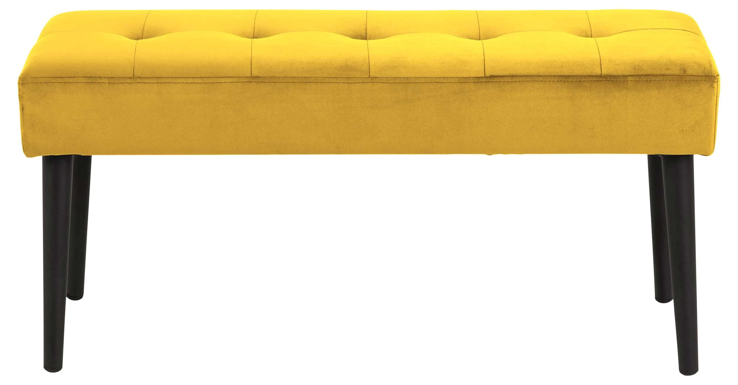 In de categorie ‘niet noodzakelijk, wél heel erg leuk’: dit mooie bankje van de Gloria-serie. Het bankje is 95 cm lang en past daardoor perfect als finishing touch in je woonkamer, hal of slaapkamer. De matzwarte poten zijn gemaakt van gepoedercoat metaal, de zitting is overtrokken met een gele stof.