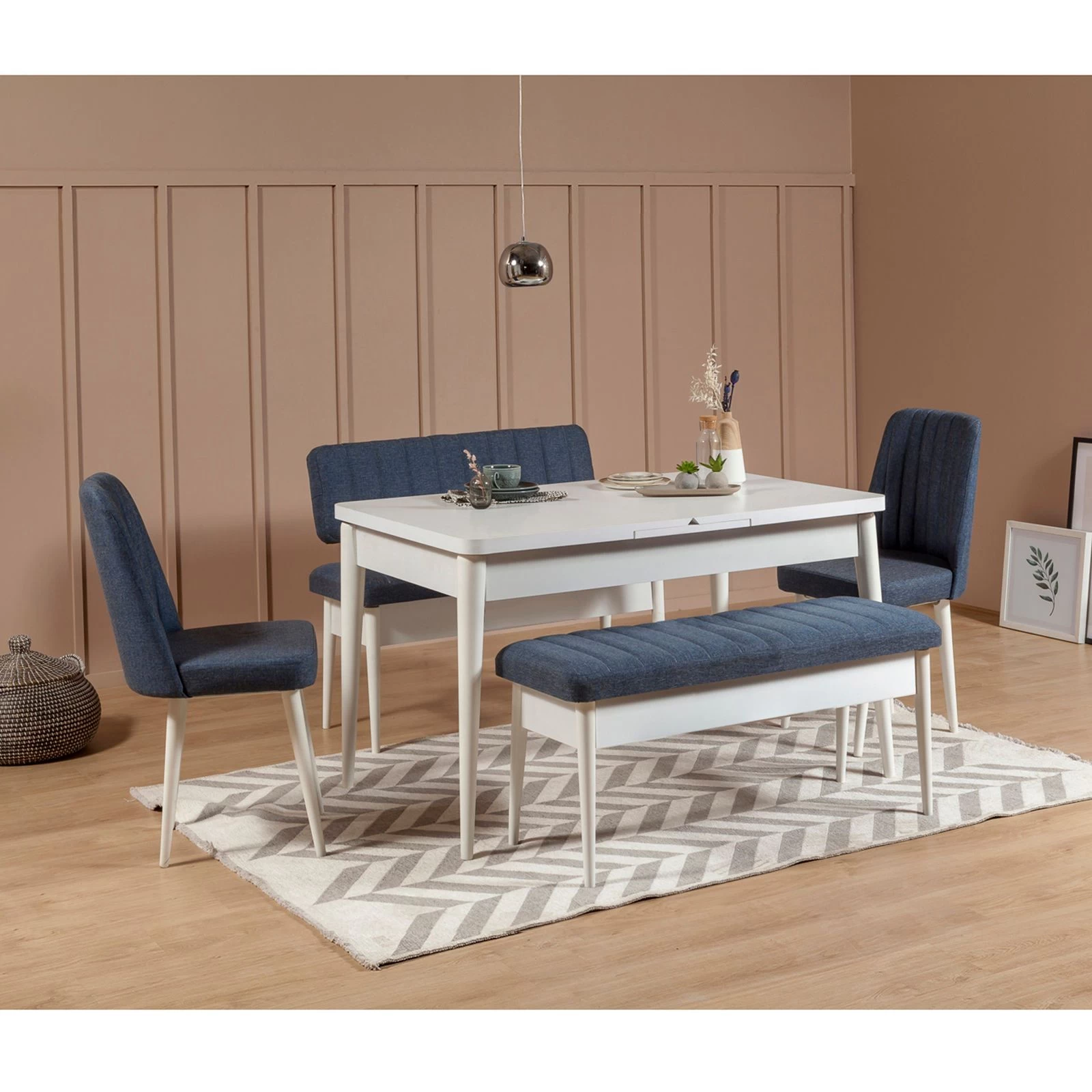 Ben je op zoek naar een veelzijdige en duurzame bank die de stijl van je woonruimte zal verhogen? Kijk dan niet verder dan de Vella-bank! Een van de opvallende kenmerken van de bank is de 100% gemelamineerde spaanplaatconstructie. Dit materiaal staat bekend om zijn duurzaamheid en weerstand tegen slijtage, waardoor de bank zeer goed bestand is tegen krassen, vocht en hitte. Met de Vella-bank kun je genieten van een meubelstuk dat er jarenlang onberispelijk uit blijft zien. Naast de stevige constructie heeft de Vella-bank ook een luxe stoffen bekleding. De bank is gemaakt van 100% linnen en biedt een zachte en comfortabele zitervaring, zodat jij en je gasten in alle comfort kunnen ontspannen. Of je nu geniet van een maaltijd of gewoon luiert met een boek, de Vella-bank biedt een gezellige zitmogelijkheid. Je kunt erop rekenen dat de bank bestand is tegen dagelijks gebruik en een betrouwbare zitoplossing biedt voor je huis. De poten van haagbeuk voegen een vleugje elegantie en verfijning toe aan het totale ontwerp en creëren een prachtig middelpunt in elke kamer. Wat afmetingen betreft, biedt de Vella-bank royale ruimte voor zitplaatsen. Met een breedte van 110 cm, een hoogte van 48 cm en een diepte van 40 cm biedt de bank comfortabel plaats aan meerdere personen. Bovendien biedt het opbergmeubel dat aan de bank is bevestigd een handige ruimte om boeken, tijdschriften of andere kleine voorwerpen op te bergen. Met een breedte van 95 cm, hoogte van 12 cm en diepte van 27 cm biedt het opbergmeubel voldoende ruimte zonder afbreuk te doen aan het algehele ontwerp van de bank. De Vella-bank heeft ook een zithoogte van 48 cm, waardoor hij geschikt is voor verschillende toepassingen. Of je hem nu in je eetkamer, woonkamer of zelfs slaapkamer zet, de Vella-bank past naadloos in elke interieurstijl. De contrasterende combinatie van witte en donkerblauwe kleuren voegt een modern en stijlvol tintje toe aan je ruimte. Kortom, de Vella-bank is een fantastische investering voor wie zijn leefruimte wil verrijken met een stijlvolle en veelzijdige zitoplossing.
