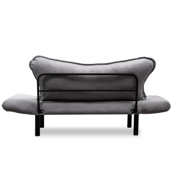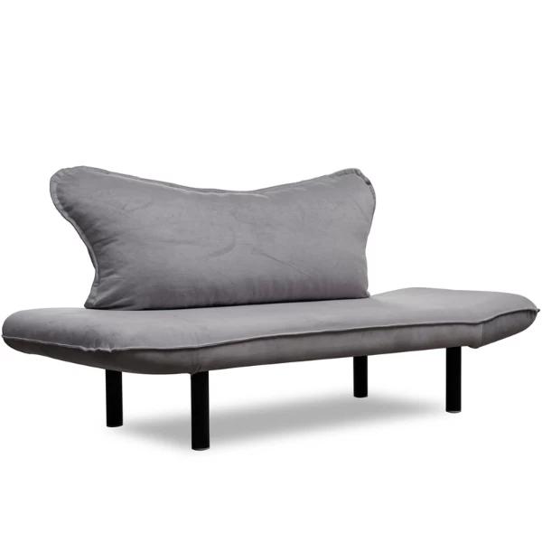 Bankbed Jacinda 140x65x65cm in grijs katoen met zwart metalen frame. Met verstelbare armleuningen. Kan omgevormd worden tot bed.