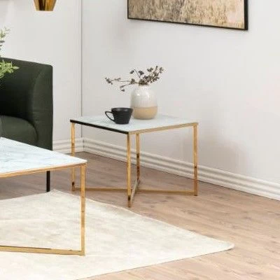 De Anika bijzettafel is ideaal om naast een bed of zetel te plaatsen. Deze bijzettafel is zeer praktisch en compact. Je kan gemakkelijk een lampje, kaars of plant op het tafelblad plaatsen. Deze bijzettafel is gemaakt uit kunstmarmer in het wit met gouden poten.