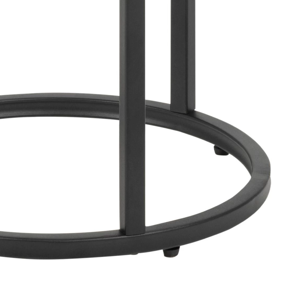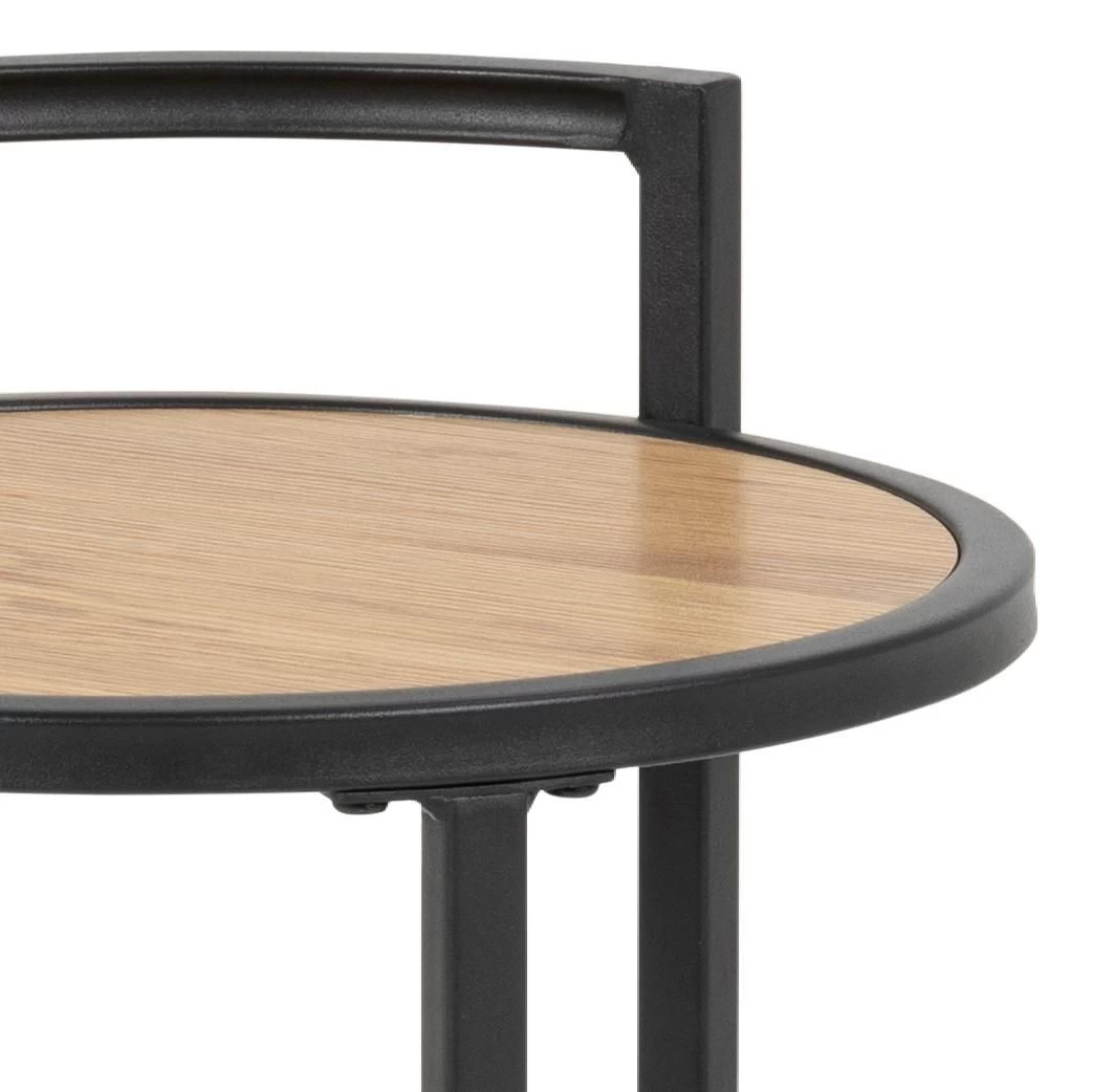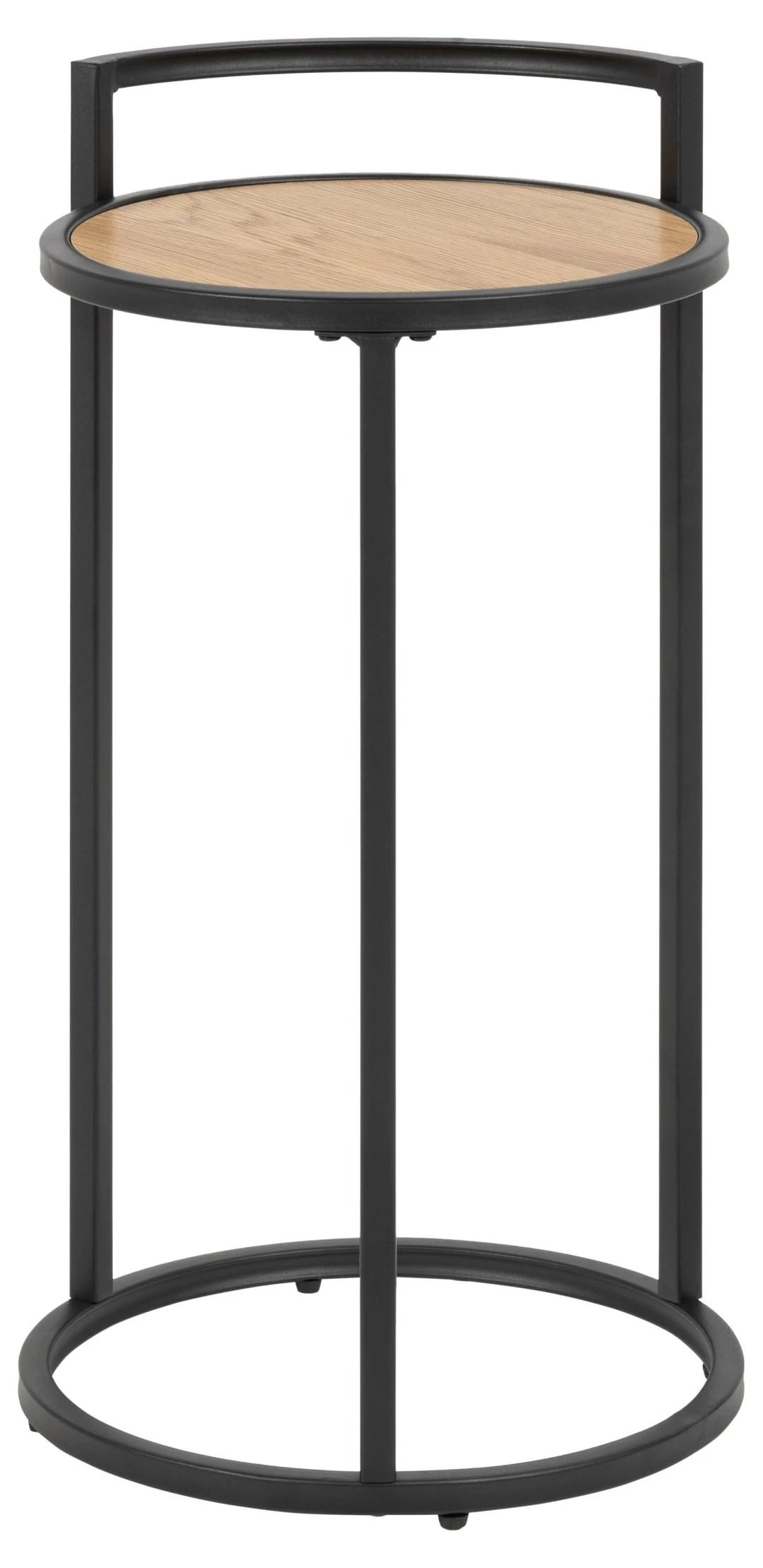 Ronde bijzettafeltje Dover, gemaakt uit metaal afgewerkt met zwarte poedercoating en een tafelblad uit wilde eik.