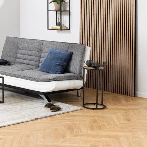 Met de meubelen uit de Dover-collectie richt je je huis in volgens de laatste trends. Dit stoere bijzettafeltje heeft een frame uit zwart gepoedercoat metaal en een warm blad met een wilde eik decor. Dit bijzettafeltje is erg handig om bijvoorbeeld een tafellamp en magazines op te plaatsen.