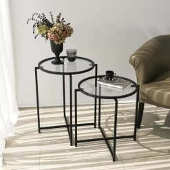 Locelso Bijzettafel | 100% Gehard Glas En Metalen Frame | Zwart