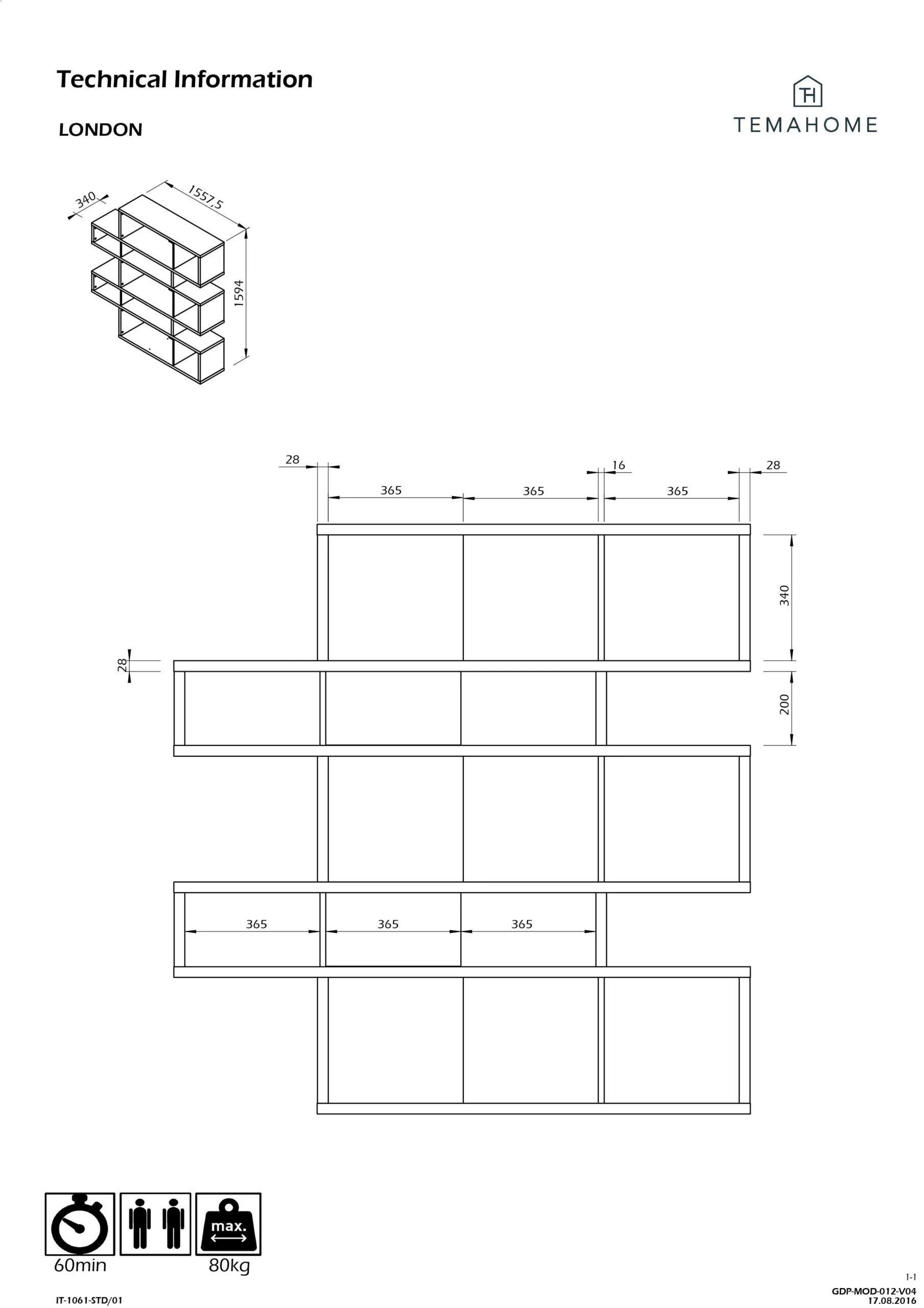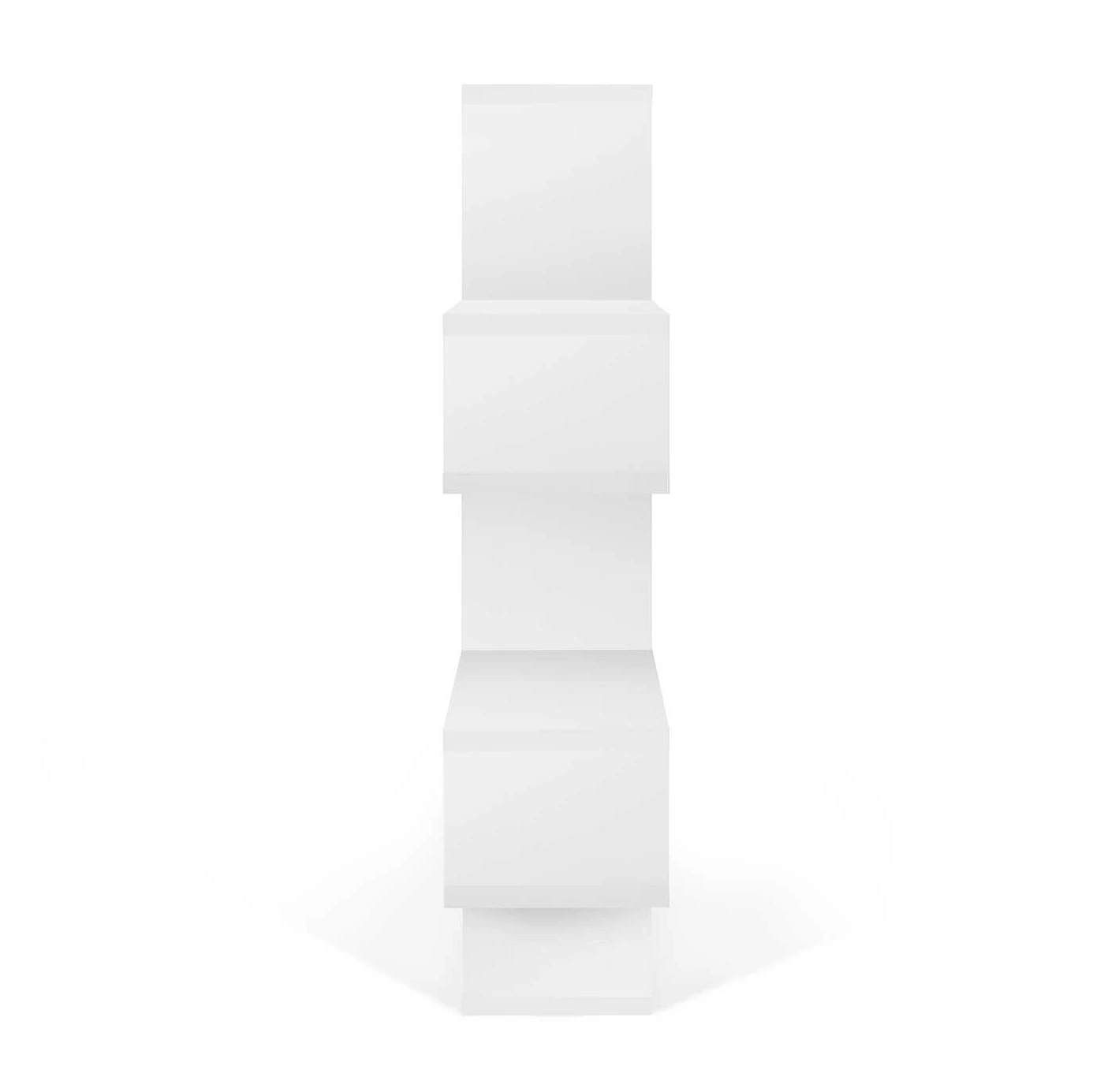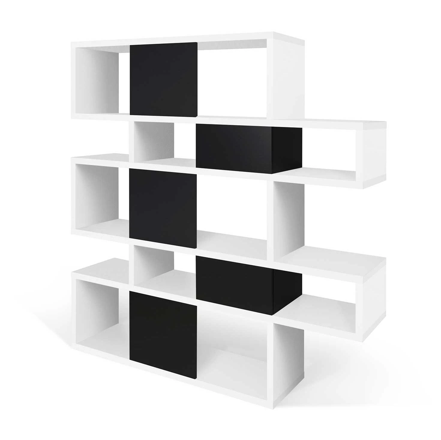 Deze boekenkast is gemaakt van wit gelakte MDF. Sommige compartimenten werden voorzien van een matzwarte achterwand. De kast is ingedeeld in 5 niveaus. Op elk niveau beschik je over een groot en een kleiner compartiment.
