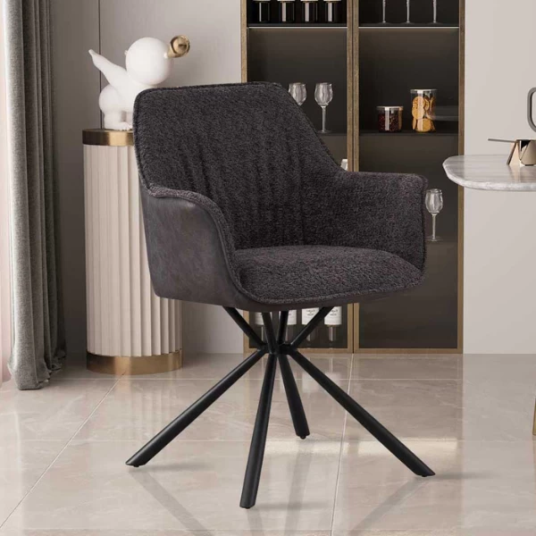 Of je nu een comfortabele stoel nodig hebt voor je woonkamer, slaapkamer of kantoor, de ‘Lucie’ stoel in Bouclé Grey Back PU Light Grey is de perfecte keuze.