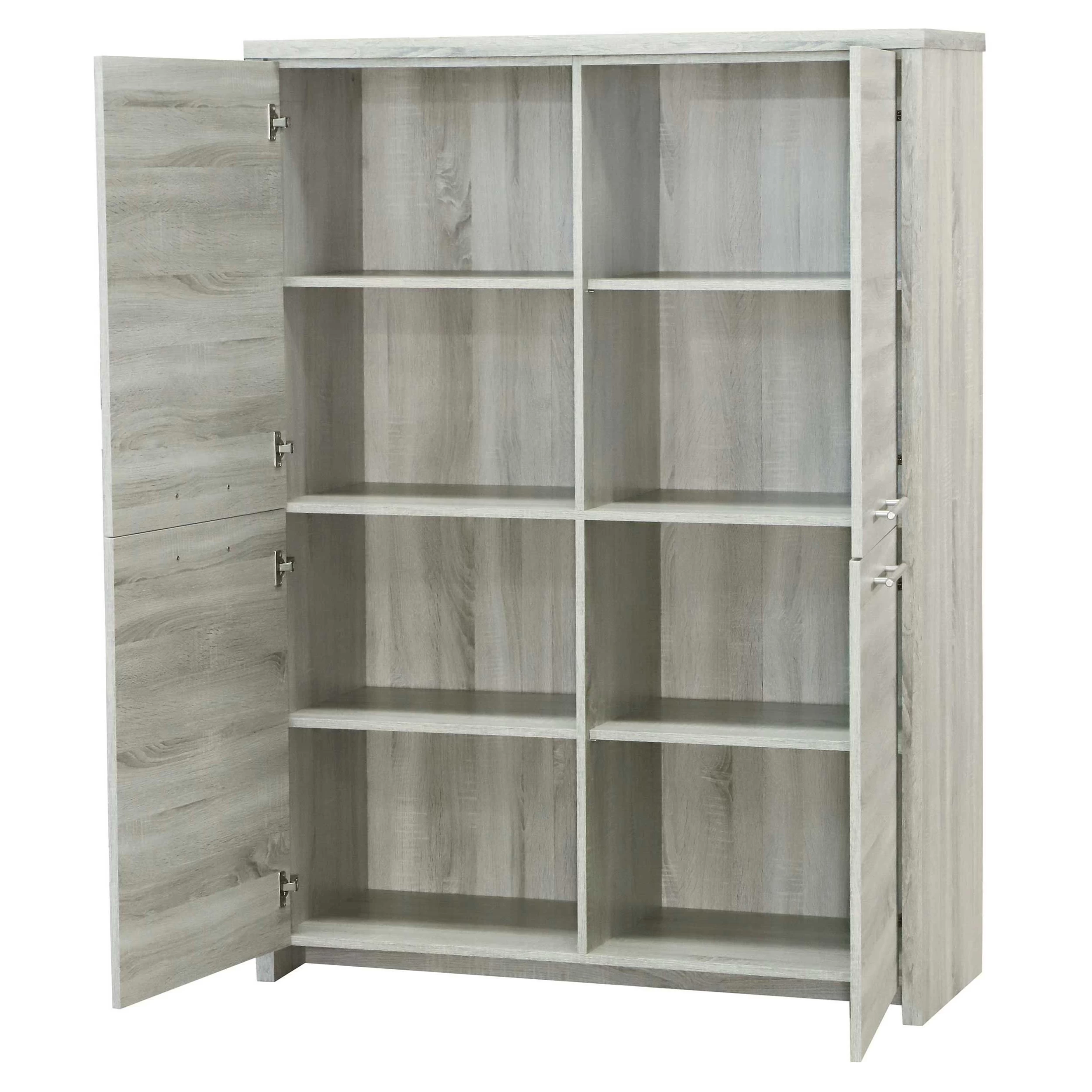 Deze moderne buffetkast is gemaakt uit spaanplaat met een sonoma eikdecor (grijs). De kast telt vier draaideuren en zes legplanken. Met deze barkast creëer je dus heel wat opbergruimte in de woonkamer! Ontdek de overige meubelen van de Loft collectie online in onze shop!