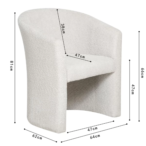 Kuipzeteltje ‘Charlie’ Bouclé zandkleur biedt maximaal comfort met PU bekleding en duurzame spaanplaat structuur. Afmetingen: H 81 x B 64 x D 62 cm.