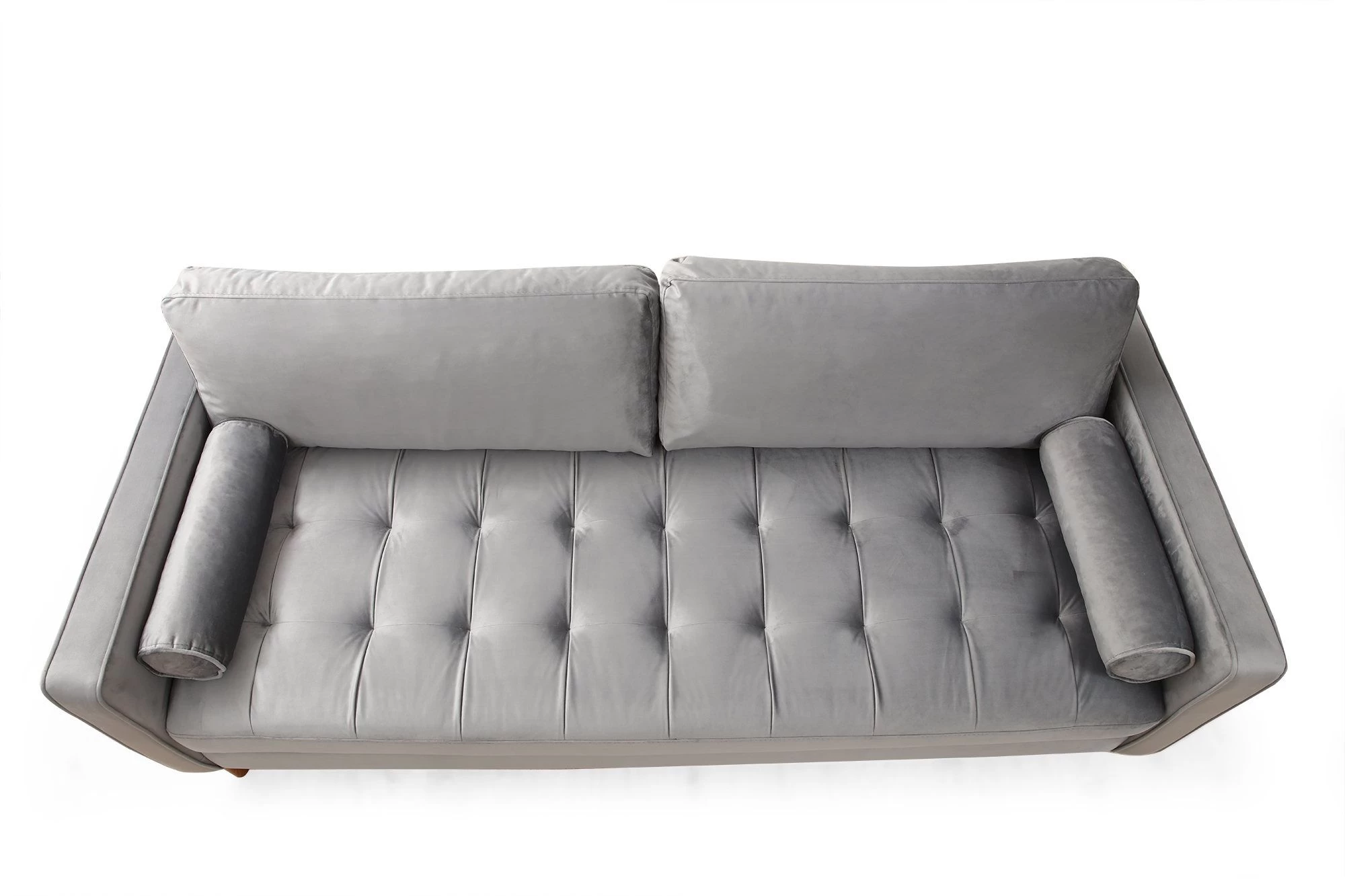 Maak je klaar om je woonkamer te transformeren met deze stijlvolle 3-zitsbank. Met zijn comfortabele schuimkussens en unieke ontwerp is het de perfecte aanvulling voor elke ruimte. Het beukenhout en spaanplaat frame zorgen samen met de 100% polyester stof voor duurzaamheid en eenvoudig onderhoud. De bank wordt geleverd met 2 kussens voor extra comfort en heeft draagbare kussens voor extra gemak. De lichtgrijze kleur en walnoothouten poten voegen een vleugje verfijning toe aan je inrichting.
