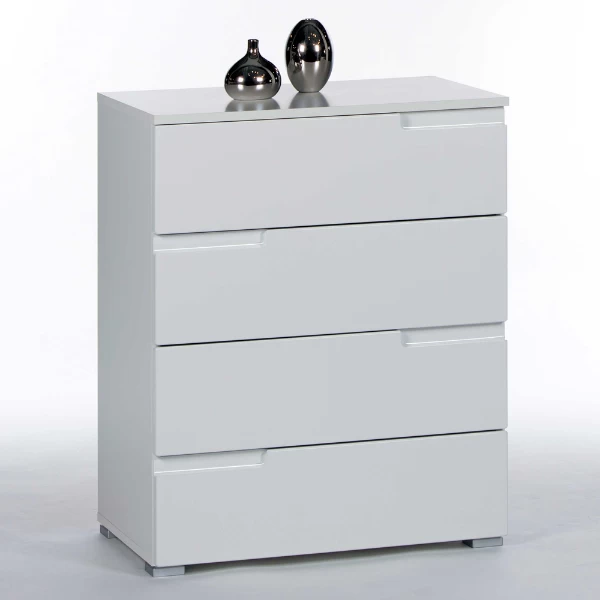 Commode Peso met 4 lades. Gemaakt uit witte MDF, voorkant afgewerkt in hoogglans.