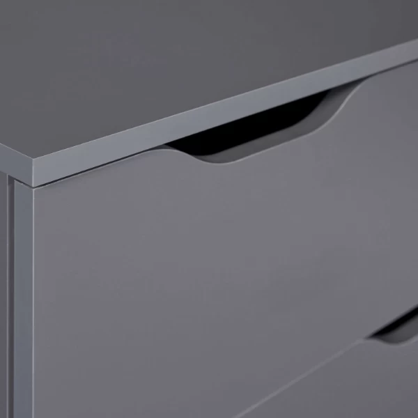 Met royale afmetingen van 81,5 cm x 40 cm x 111,9 cm is de Silenzia-kast ruim genoeg om kleding, accessoires en andere persoonlijke spullen netjes en georganiseerd op te bergen. De diepe, donkergrijze kleur voegt een vleugje moderniteit en verfijning toe aan elke kamer, waardoor het een tijdloos meubelstuk is dat past bij verschillende interieurstijlen.