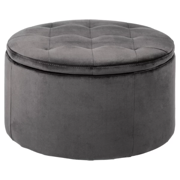 De Retina ronde voetenbank met opbergruimte is ontworpen met verborgen opbergruimte en tuftings, waardoor het een stijlvolle en praktische toevoeging is aan elke ruimte. Ø60×35 cm.