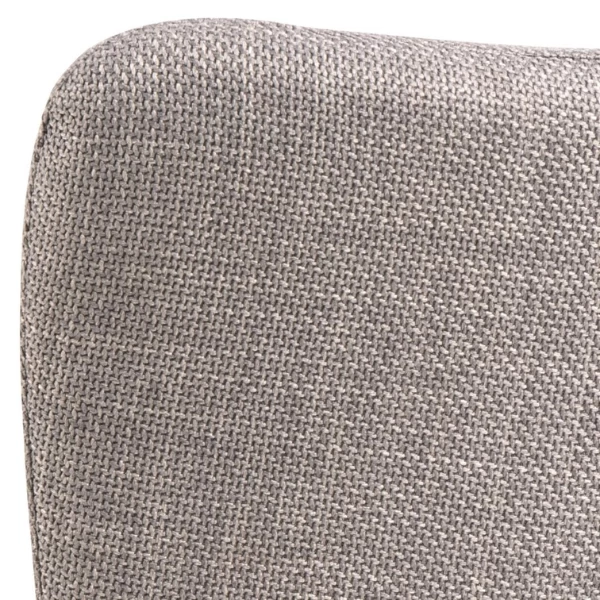 Bovendien heeft het stalen frame van de stoel een poedercoating met een matzwarte ruwe afwerking, wat een mooi contrast vormt met de lichtgrijsbruine stof. De poedercoating beschermt het staal tegen krassen en corrosie en zorgt ervoor dat de stoel lang proper blijft.