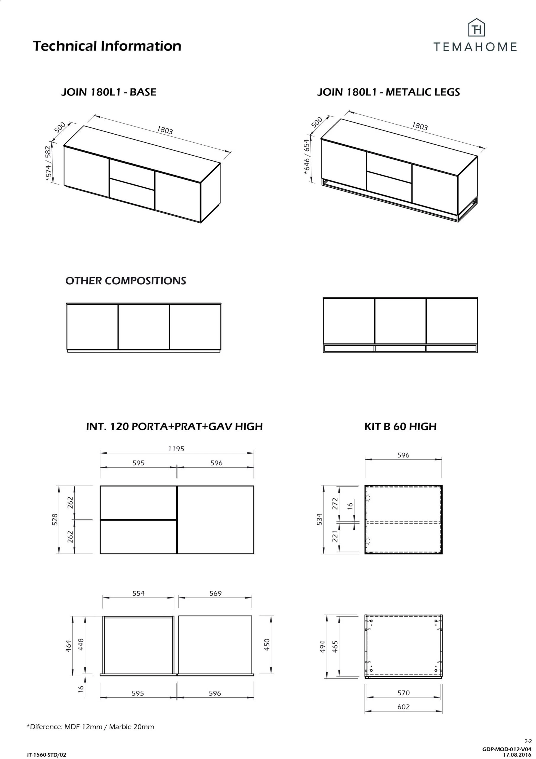 Dit model is 180 cm lang en beschikt over 2 deuren, 2 legplanken en 2 laden. Het maximale draagvermogen bedraagt 45 kg. Dressoir Join is gemaakt van MDF en spaanplaat.