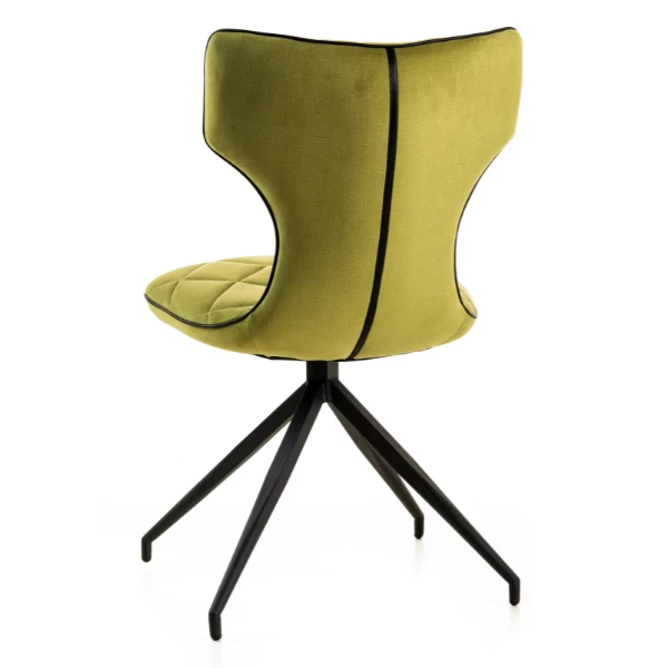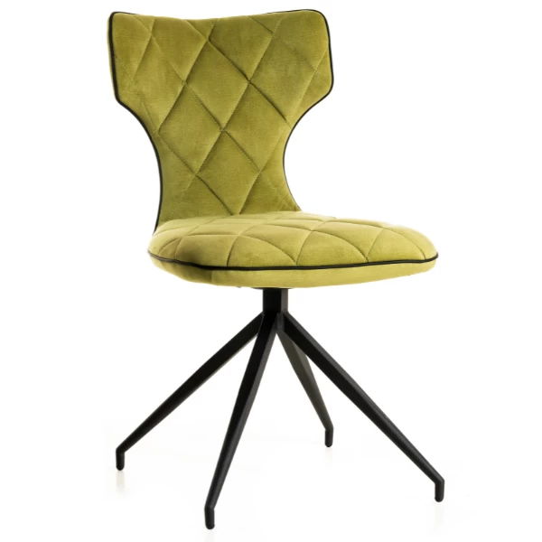 Eetkamerstoel Aveiro met zwarte metalen poten en bekleed in groene stof.