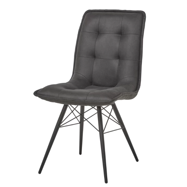 Eetkamerstoel Beta met zwarte metalen poten en zwarte bekleding.