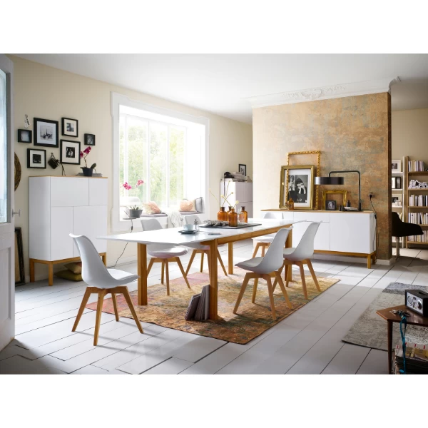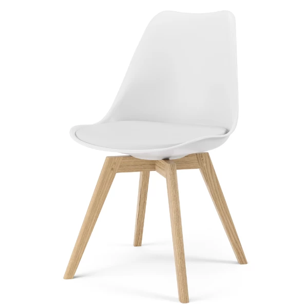 Er zijn veel varianten van eetkamerstoel Blair. De kuip is gemaakt uit PP. Het zitkussen kan uit stof of kunstleer gemaakt zijn, maar wees gerust, wat je ook kiest, met de Blair-stoel ben je altijd verzekerd van het hoogste zitcomfort. Deze witte stoel heeft een kuip uit PP en een zitkussen uit kunstleer. De Blair-stoelen kunnen tot 125 kg dragen en zijn verkrijgbaar in verschillende kleurencombinaties.