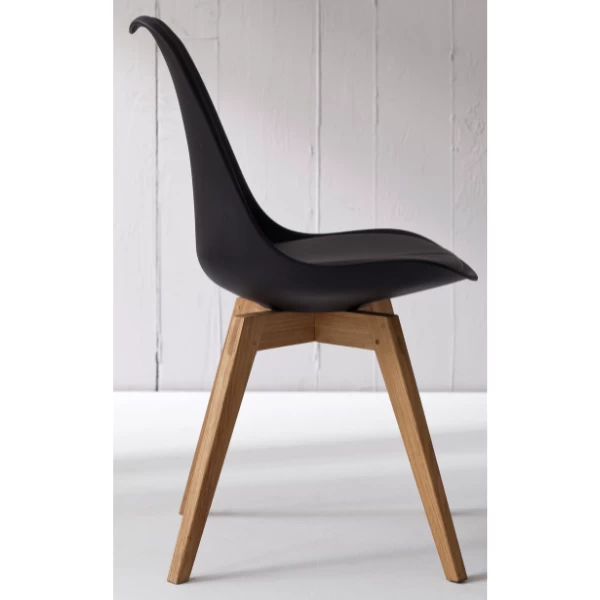 Er zijn veel varianten van eetkamerstoel Blair. De kuip is gemaakt uit PP. Het zitkussen kan uit stof of kunstleer gemaakt zijn, maar wees gerust, wat je ook kiest, met de Blair-stoel ben je altijd verzekerd van het hoogste zitcomfort. Deze zwarte stoel heeft een kuip uit PP en een zitkussen uit kunstleer. De Blair-stoelen kunnen tot 125 kg dragen en zijn verkrijgbaar in verschillende kleurencombinaties.