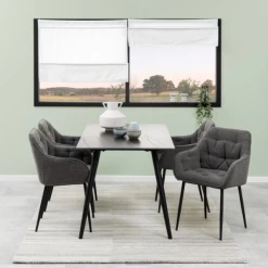Deze tijdloze, klassieke eetkamerstoel is de finishing touch in uw eetkamer! De neutrale kleurencombinatie van het donkergrijs en het zwart zorgt ervoor dat deze stoel gemakkelijk te integreren is in bijna elk interieur. Deze stoel is eveneens een toonbeeld van comfort dankzij zijn gebogen rugleuning en dikke vulling. De massief dennenhouten poten voorzien de stoel van extra stevigheid.