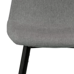 Eetkamerstoel Elynn heeft een donkergrijze polyester bekleding en poten uit massief dennenhout. De structuur van de zitting is uit multiplex en de structuur van de rugleuning is uit dennenhout en mulitiplex. De vulling bestaat uit een combinatie van schuim en gerecycleerd schuim.