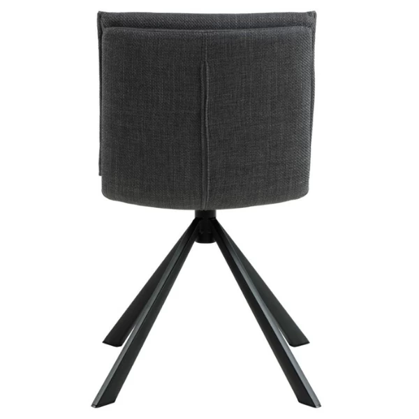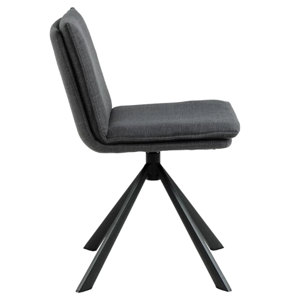 De belangrijkste kenmerken van de Flynn eetkamerstoel zijn de luxueuze donkergrijze bekleding van Basel stof, die een vleugje verfijning toevoegt aan elke eetkamer. Het ritsdetail op de rugleuning van de stoel voegt een uniek designelement toe, waardoor hij zich onderscheidt van traditionele eetkamerstoelen. De draaifunctie draait de stoel moeiteloos, zodat je gemakkelijk gesprekken kunt voeren.