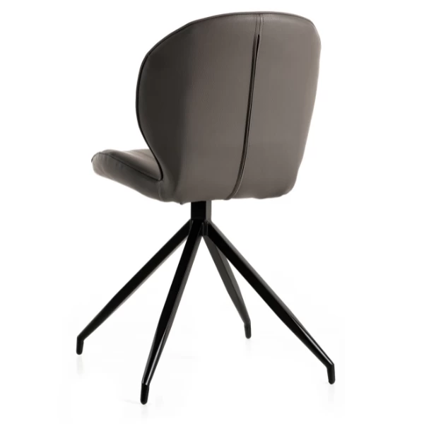 Eetkamerstoel Lori met zwarte metalen poten en een bekleding in taupe kunstleer.