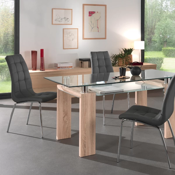 De Merlino-stoel heeft een hedendaagse uitstraling en past perfect in elke eetkamer. De structuur van de stoel bestaat uit eco-leder en staal en de voering uit schuim.