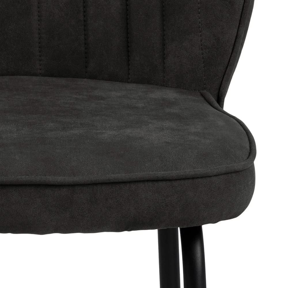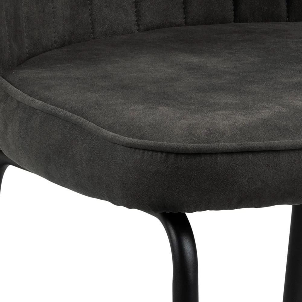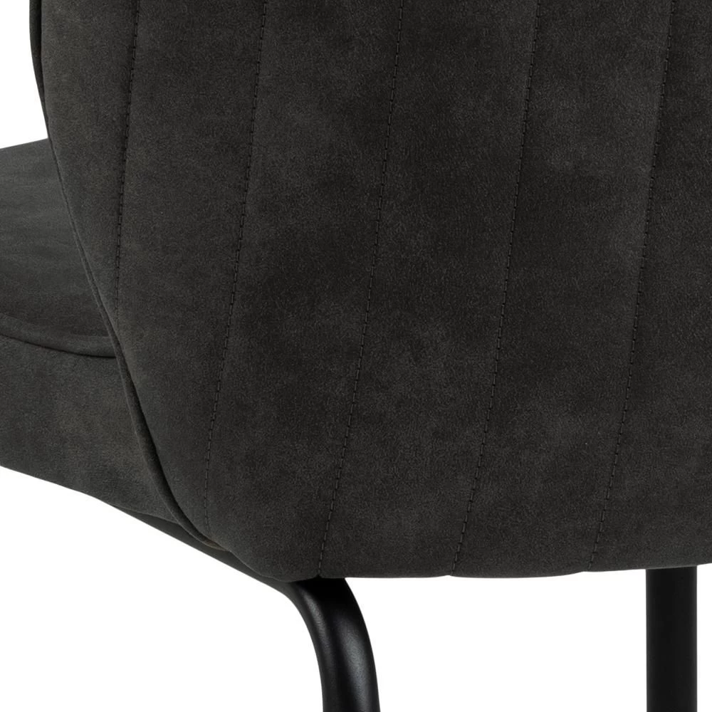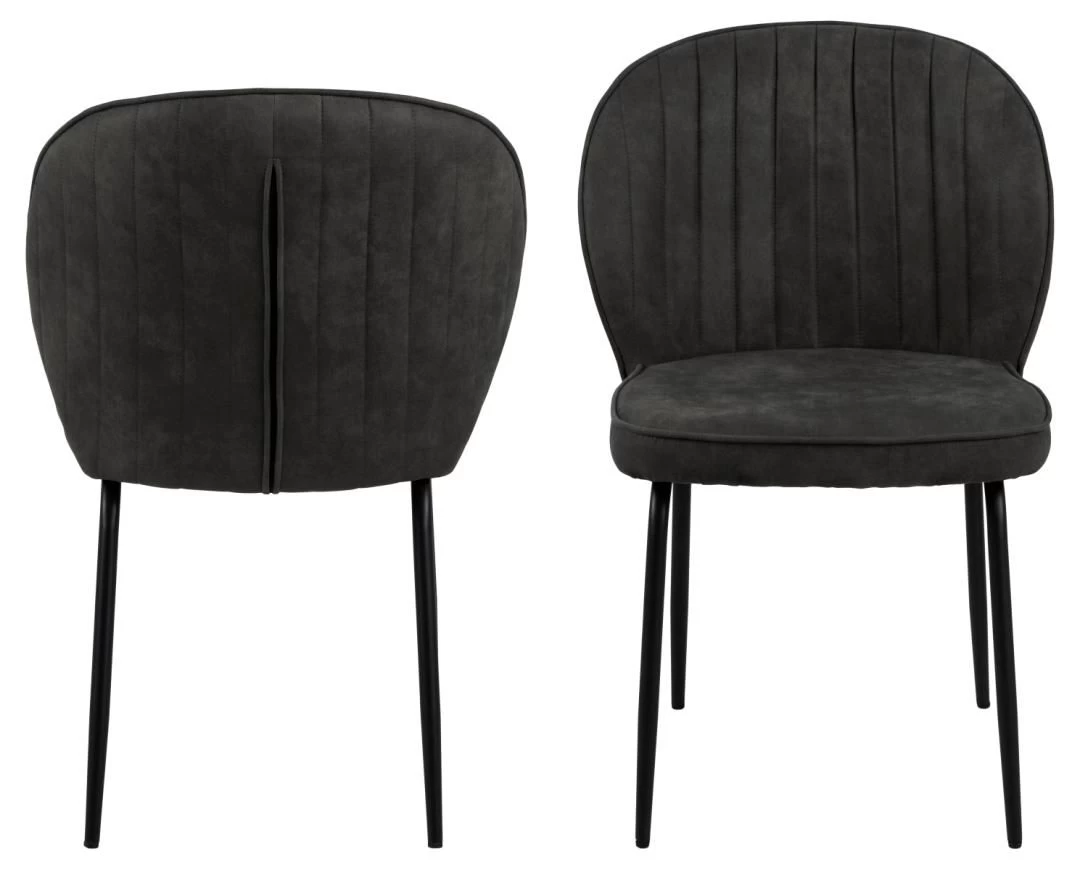 Eetkamerstoel Patri, vervaardigd uit antracietkleurige stof en poten in zwart gepoedercoat metaal. Verkocht per 2.