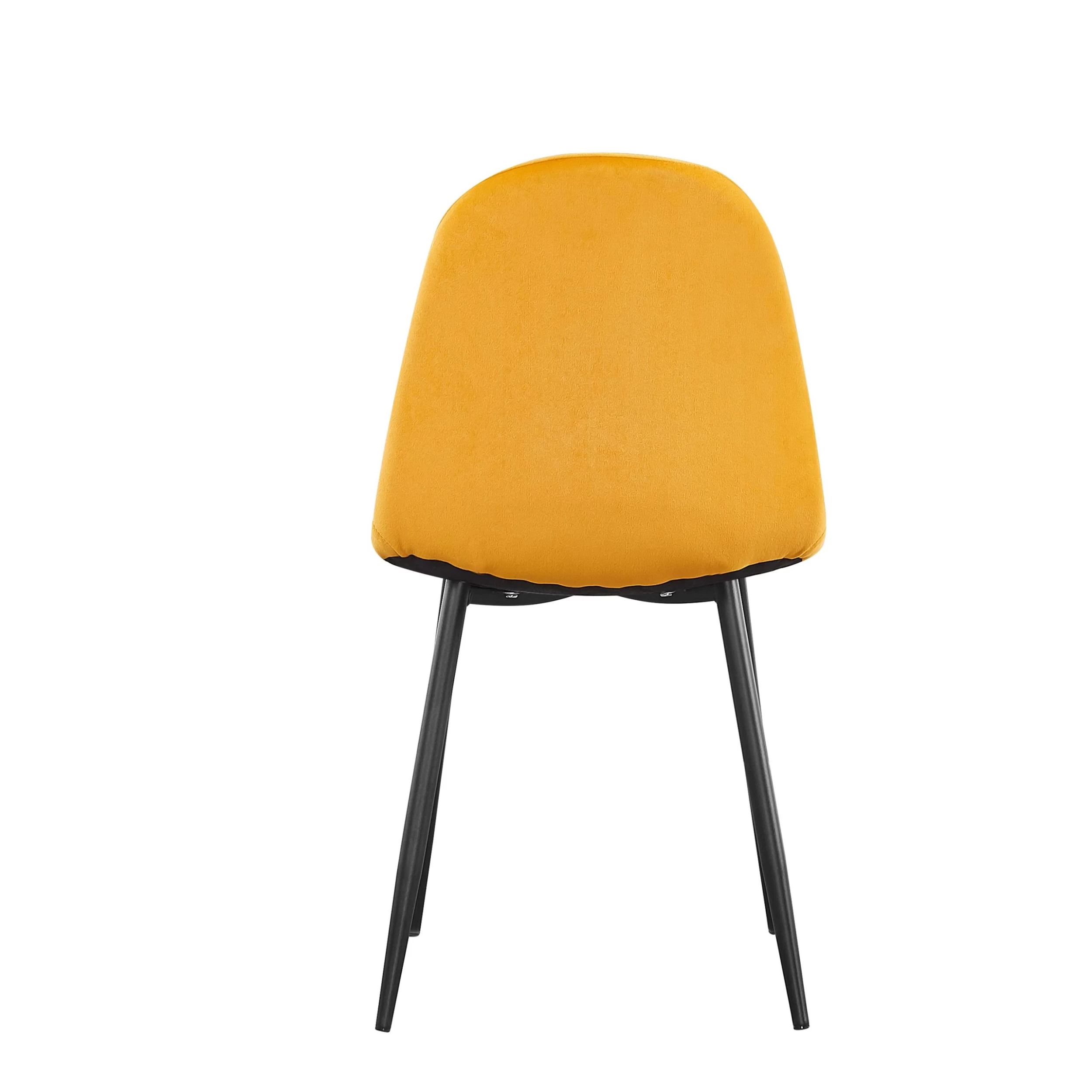 Stoel Valeska heeft een gele fluwelen bekleding en zwarte metalen poten.