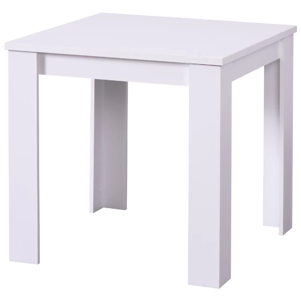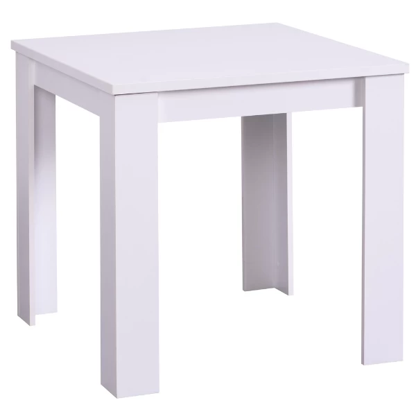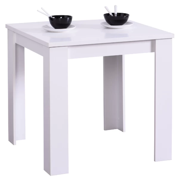Deze strakke eettafel Branco is gemaakt uit spaanplaat. De afwerking in hoogglans wit met het minimalistisch ontwerp zorgen voor een moderne uitstraling. Met een tafelblad van 80x80cm neemt deze tafel niet veel plaats in. Ideaal voor kleine ruimtes, zoals een appartement, of een kleine keuken. Dankzij het praktische ontwerp zitten de tafelpoten bij niemand in de weg, waardoor er plaats is aan de tafel voor vier personen.