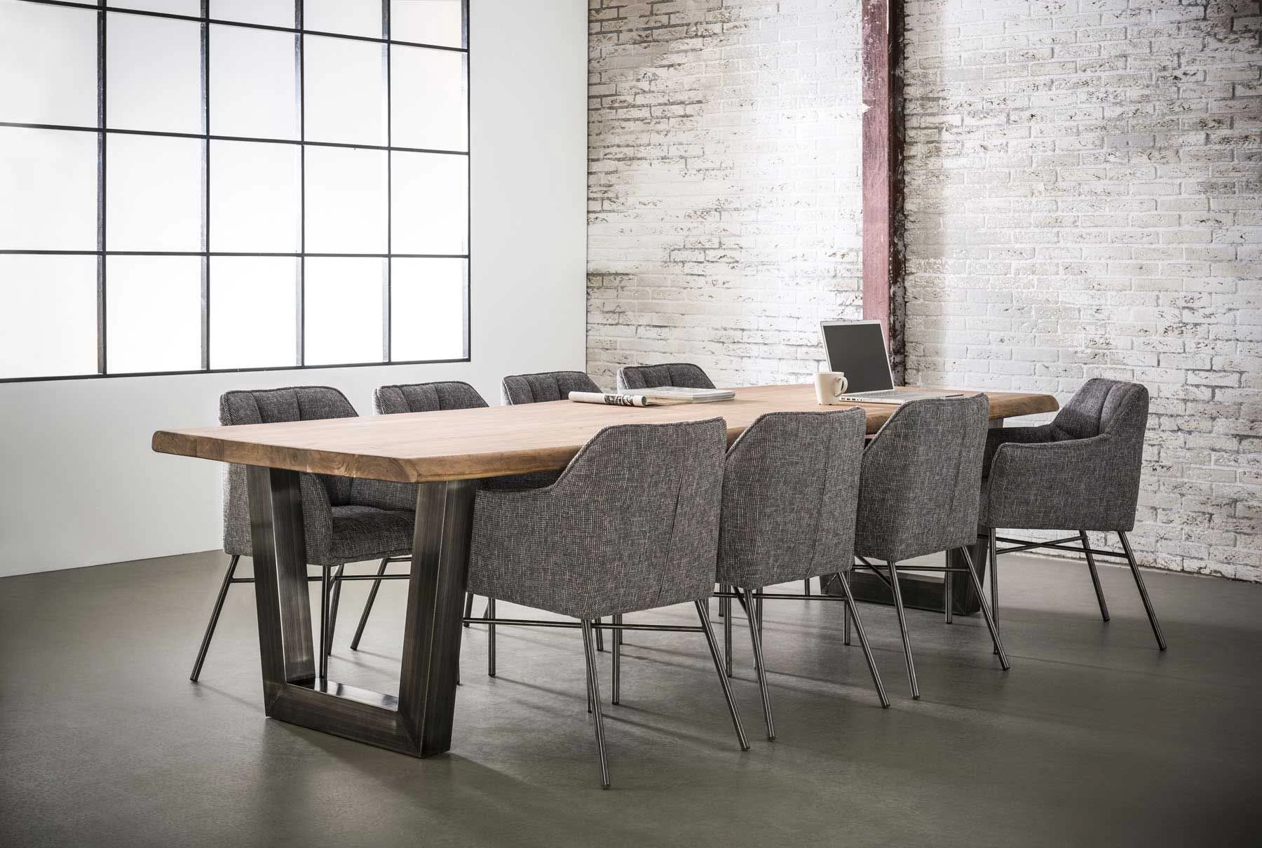 Eettafel Camille met tafelblad van massief acaciahout en trapezevormige poten van rvs. Geschikt voor 10 tot 12 personen.