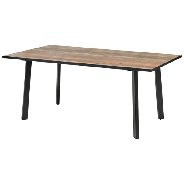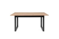 Eettafel Ivaro met een tafelblad gemaakt uit spaanplaat met een afwerking in oud eik decor en poten in zwart gepoedercoat metaal.