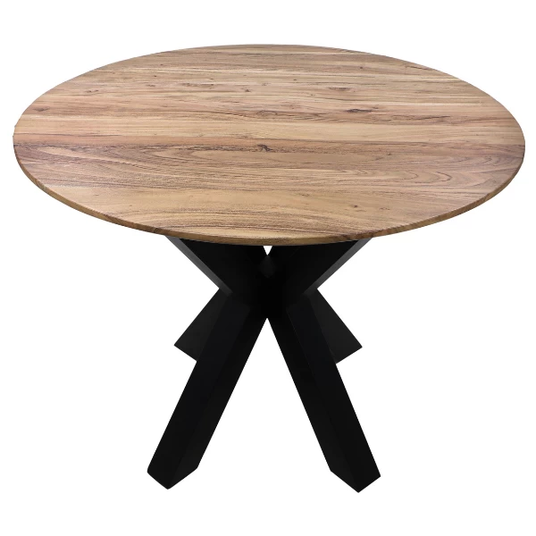 Ronde eettafel Luzern met een diameter van 100cm. Tafelblad in acaciahout met swiss edge. De tafel biedt plaats voor 3 à 4 personen.