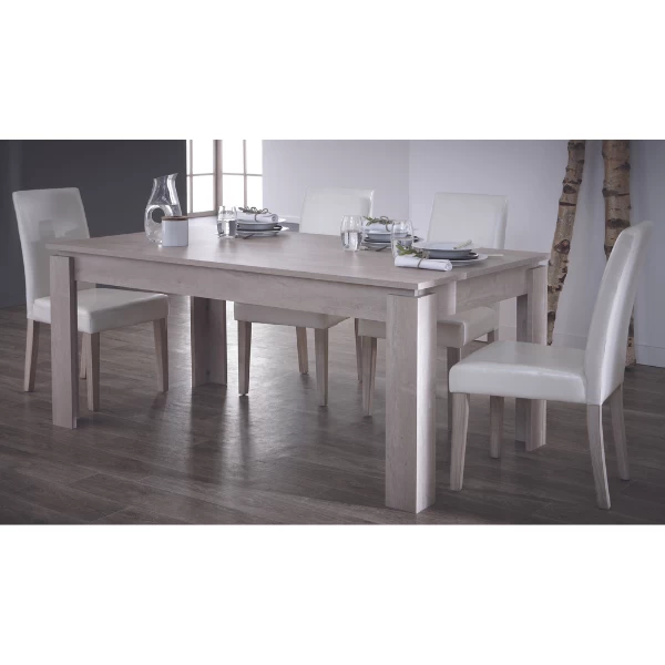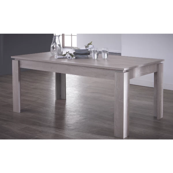 Eettafel Samira is gemaakt uit gemelamineerde spaanplaat in Champagne eikdecor en biedt plaats aan 6 tot 8 personen.