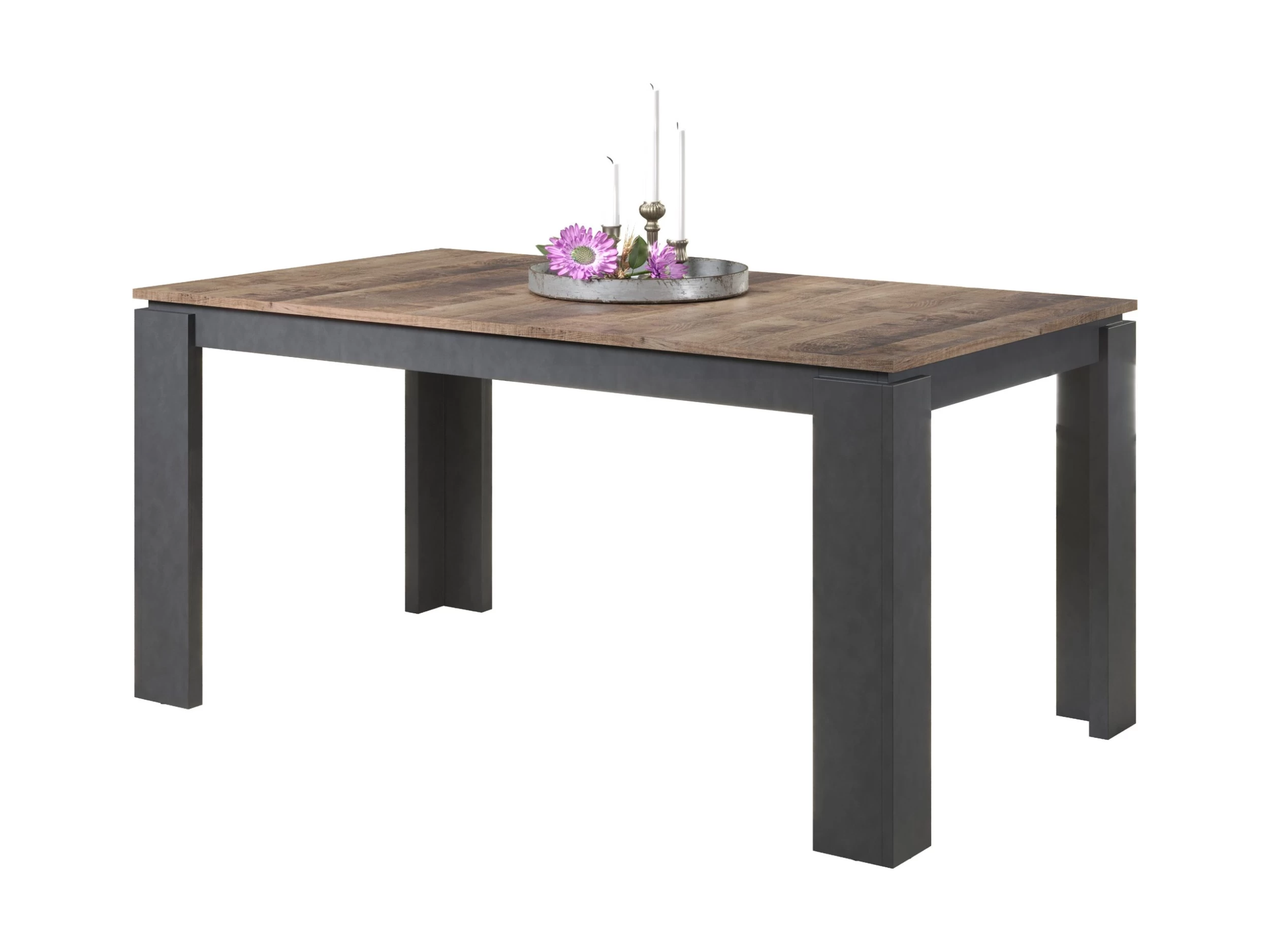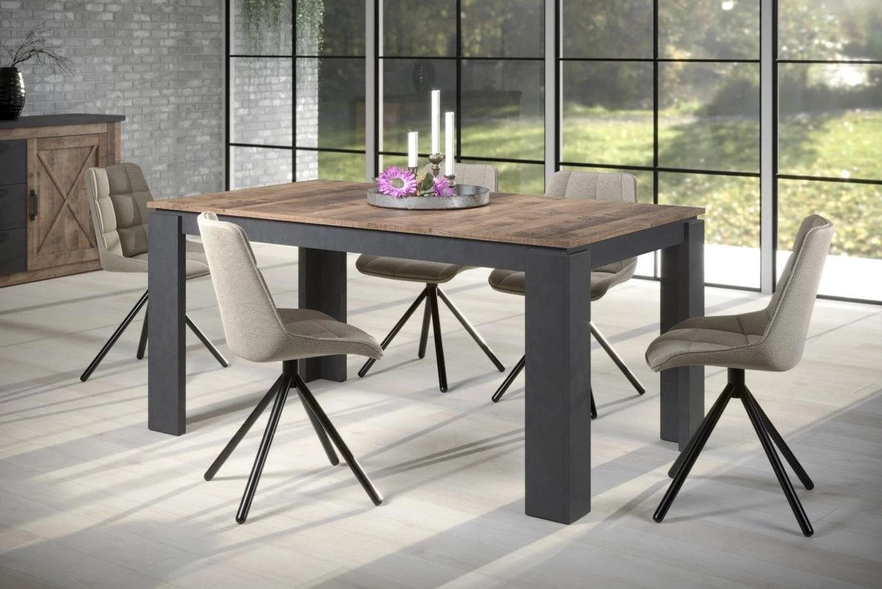 Samengevat is de moderne eettafel in eiken kleur en donkergrijs Matera-karkas een stijlvolle en functionele toevoeging aan elke eetruimte. Met zijn royale afmetingen, eenvoudige montage en uitschuifbare functie biedt hij veel opbergruimte en veelzijdigheid voor het organiseren van bijeenkomsten. De FSC-certificering benadrukt de toewijding aan duurzaamheid en verantwoord bosbeheer.