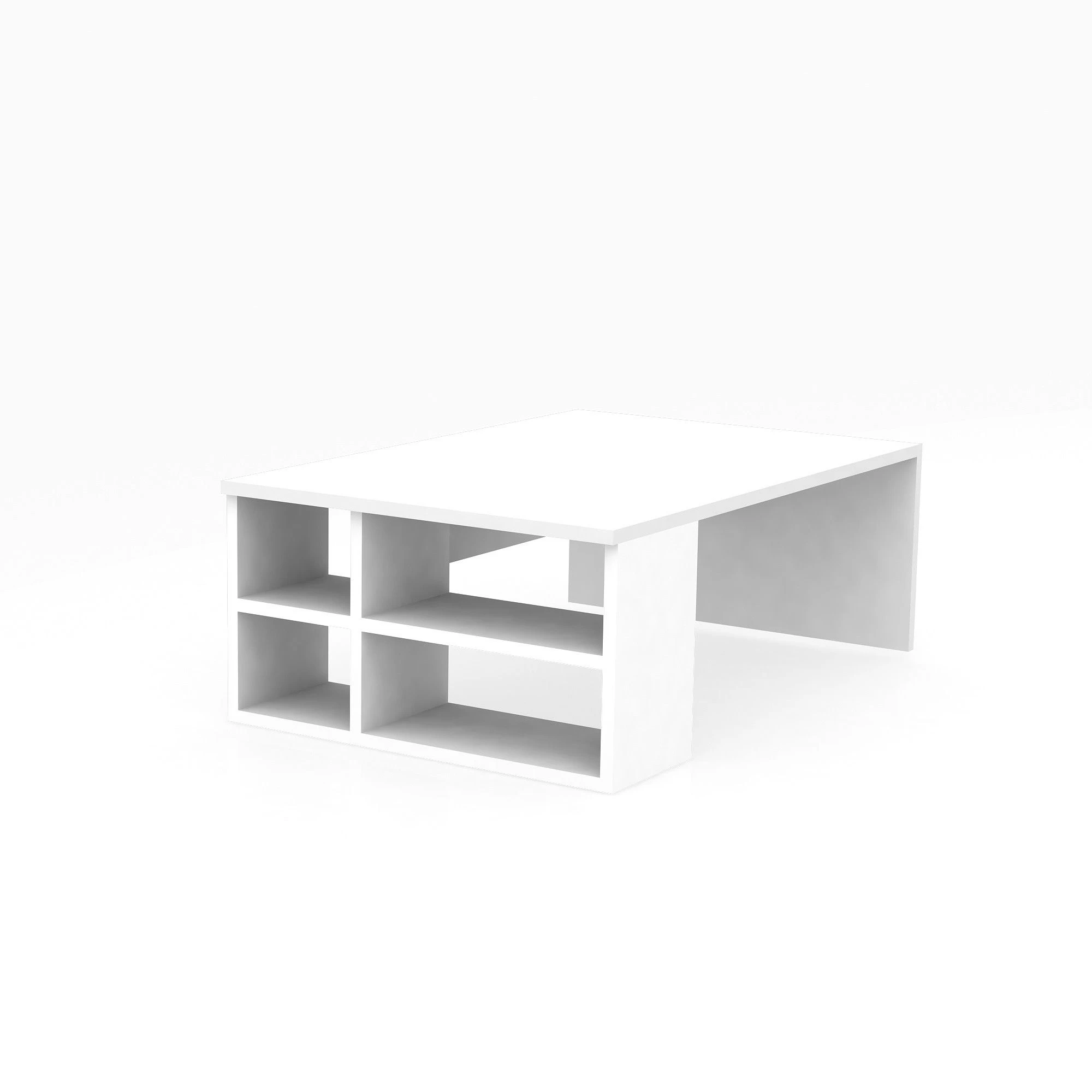Elegance salontafel: Strak en stijlvol ontwerp met een 100% melamine gecoate spaanplaat constructie. 18 mm dik, 90 cm breed en 33 cm hoog. Kleur: Wit