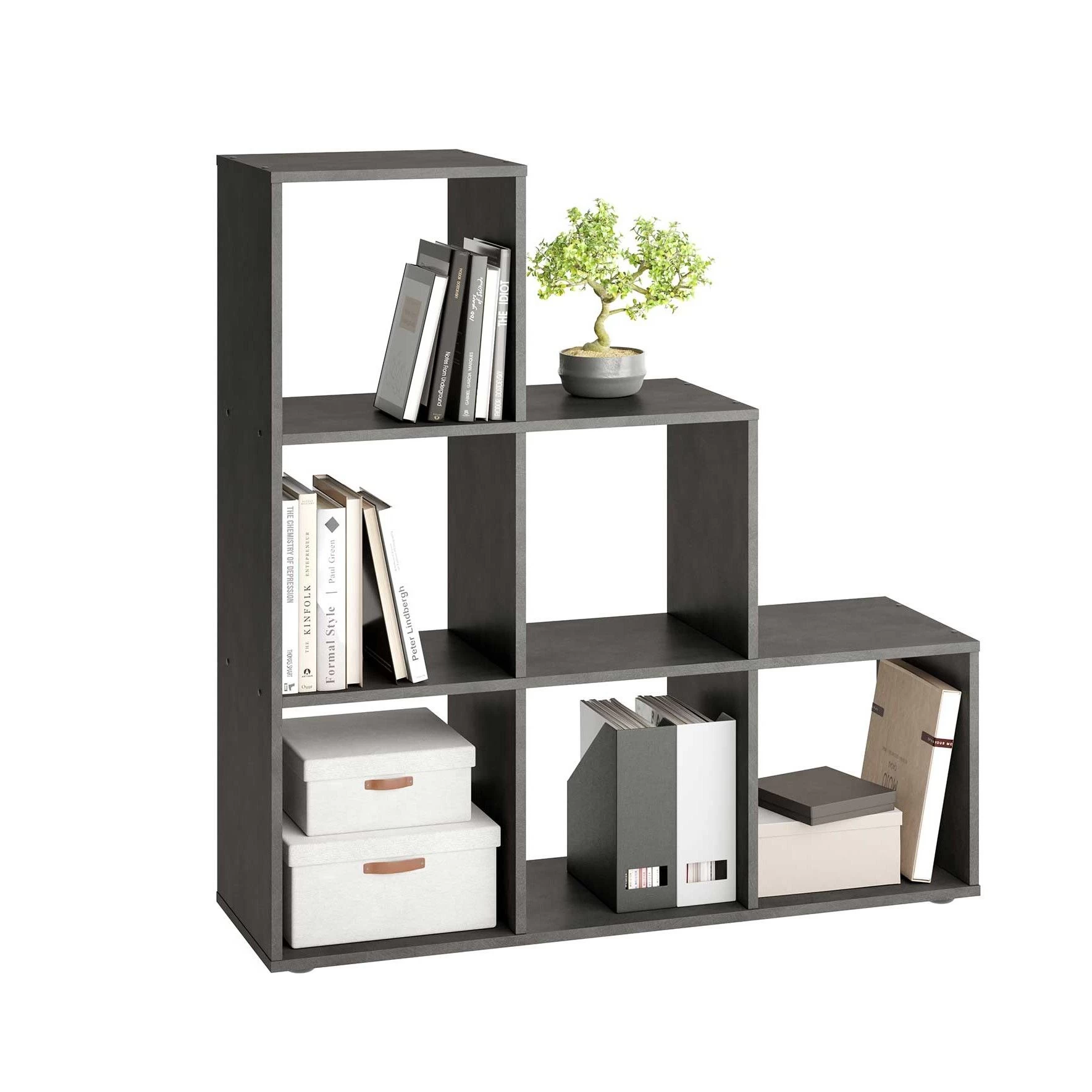 Deze roomdivider-reeks Mega in grijs biedt je talloze opbergmogelijkheden. Deze versie met 6 vakken is leuk opgebouwd en kan zowel tegen een muur als midden in de kamer worden ingezet. Je kan er opbergmandjes in gebruiken, maar evengoed vol inzetten op decoratie, boeken of dossiers. De keuze is aan jou! Wandkast Mega is ook beschikbaar in andere kleuren en afmetingen. Je ontdekt alle versies op onze site!