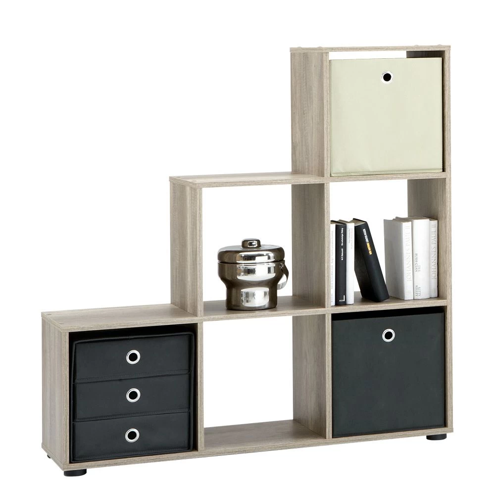 De praktische wandkast Mega onderscheidt zich dankzij haar unieke design van alle andere en wordt ongetwijfeld de blikvanger van jouw interieur. Deze kast met grijze eikenhouten look bestaat uit 6 open opbergvakken waarin je jouw mooiste spullen kan tentoonstellen. Met enkele kleurrijke mandjes creëer je bovendien een speels effect én extra opbergruimte voor kleinere spullen!
