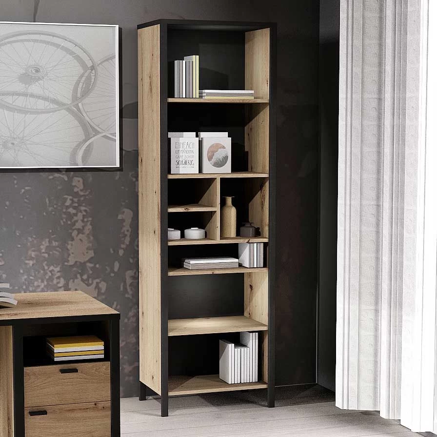 Dit hoge open rek met bijzondere indeling beschikt over 7 legplanken in totaal.