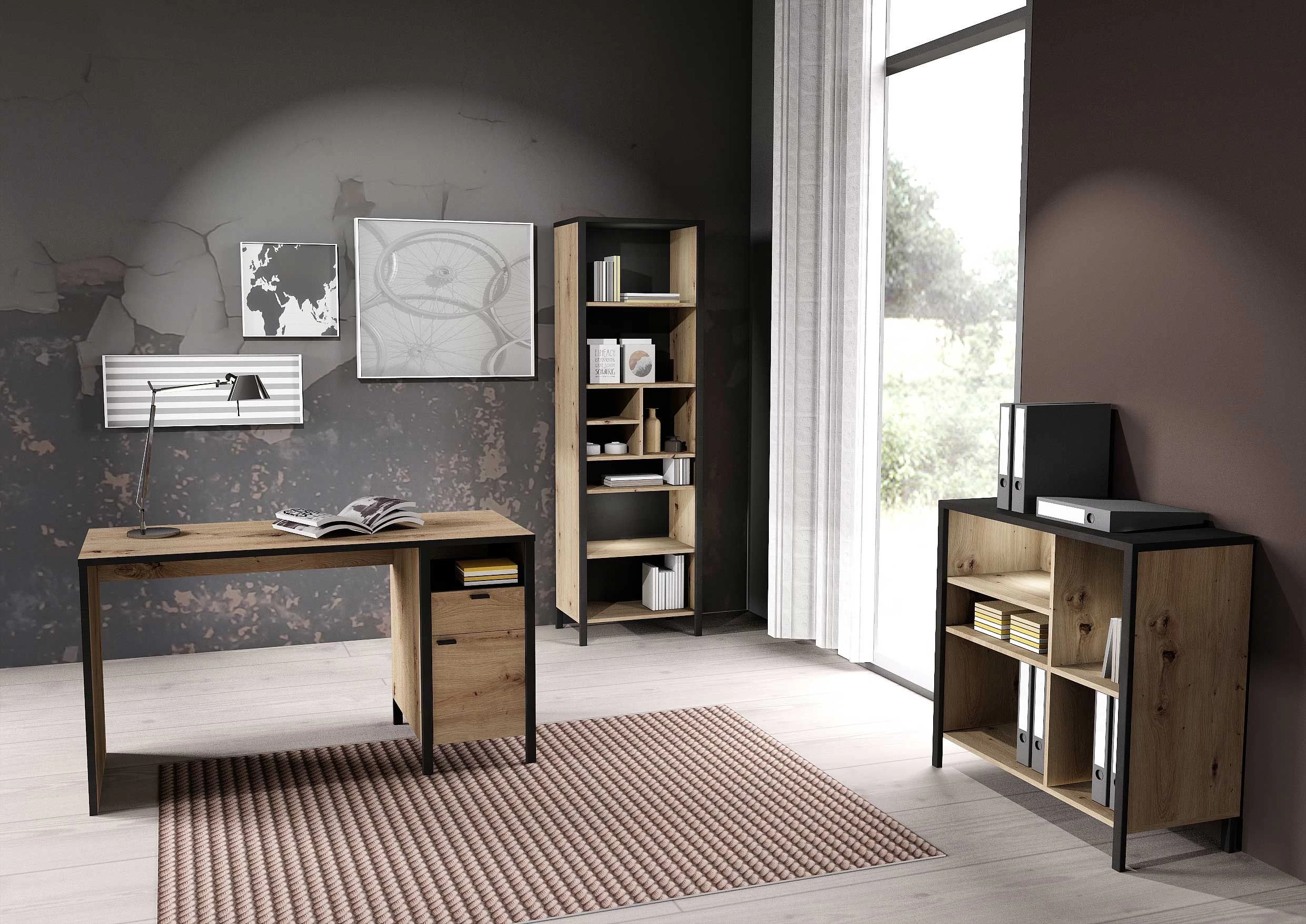 Met de meubelen van de In-Loft collectie creëer je een warm interieur. De meubelen zijn gemaakt van spaanplaat met een decor van oude eik en danken hun industriële uitstraling aan de geslaagde combinatie met het stalen frame.