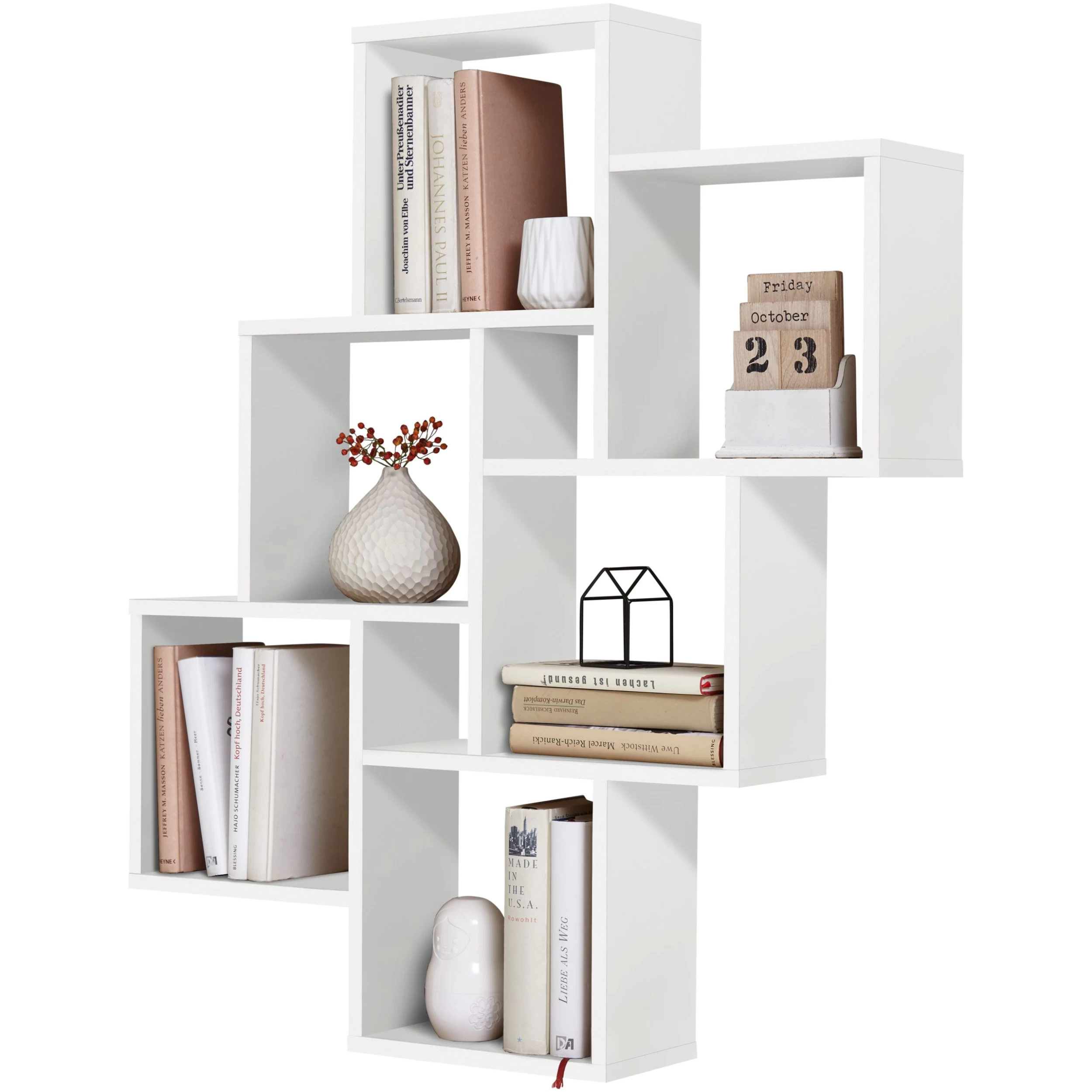 Dankzij zijn asymmetrische indeling heeft het wandrek Lauren een op en top originele uitstraling. Het rek telt 6 grote opbergvakken en 2 kleinere vakjes. Je kan er je mooiste decoratie, boeken en andere spullen op plaatsen. Het wandrek is vervaardigd uit spaanplaat met glanzend witte afwerking. Ook in andere kleuren te verkrijgen.