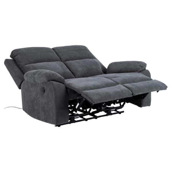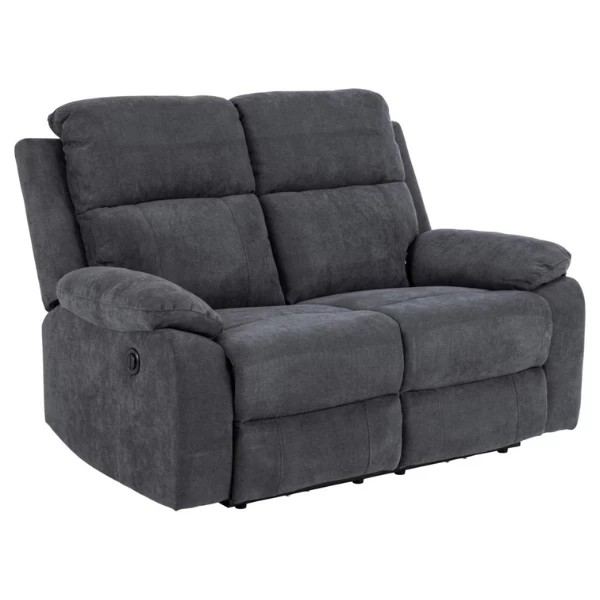 De Mora 2-zits relaxfauteuil heeft een gemotoriseerde rugleuning, een gedeelde rugleuning en een stijlvolle stoffen afwerking. Geniet van comfort en ontspanning in stijl.