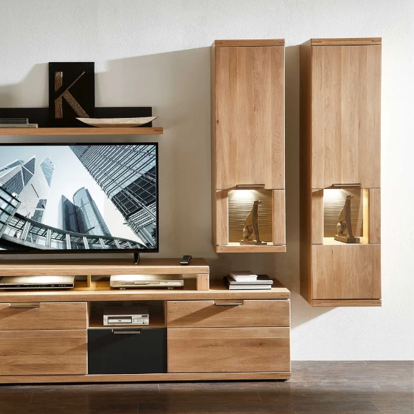 Hangkast Blanka 40x37x156cm uit spaanplaat en MDF. Afwerking in imitatie-eik. Inclusief LED-verlichting.