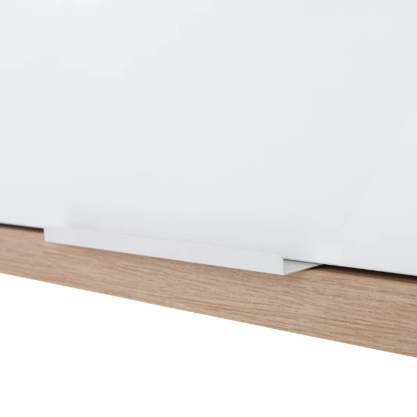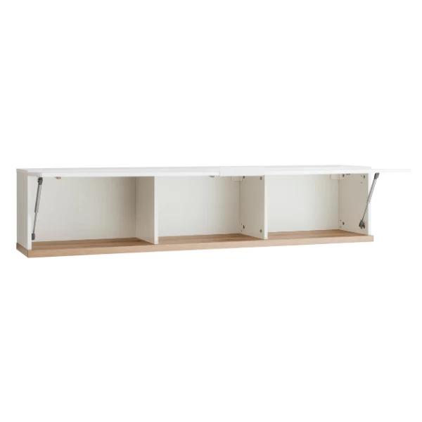 Wandkast 160x28x30cm uit spaanplaat met afwerking in eikdecor en hoogglans wit. Met klapdeur.