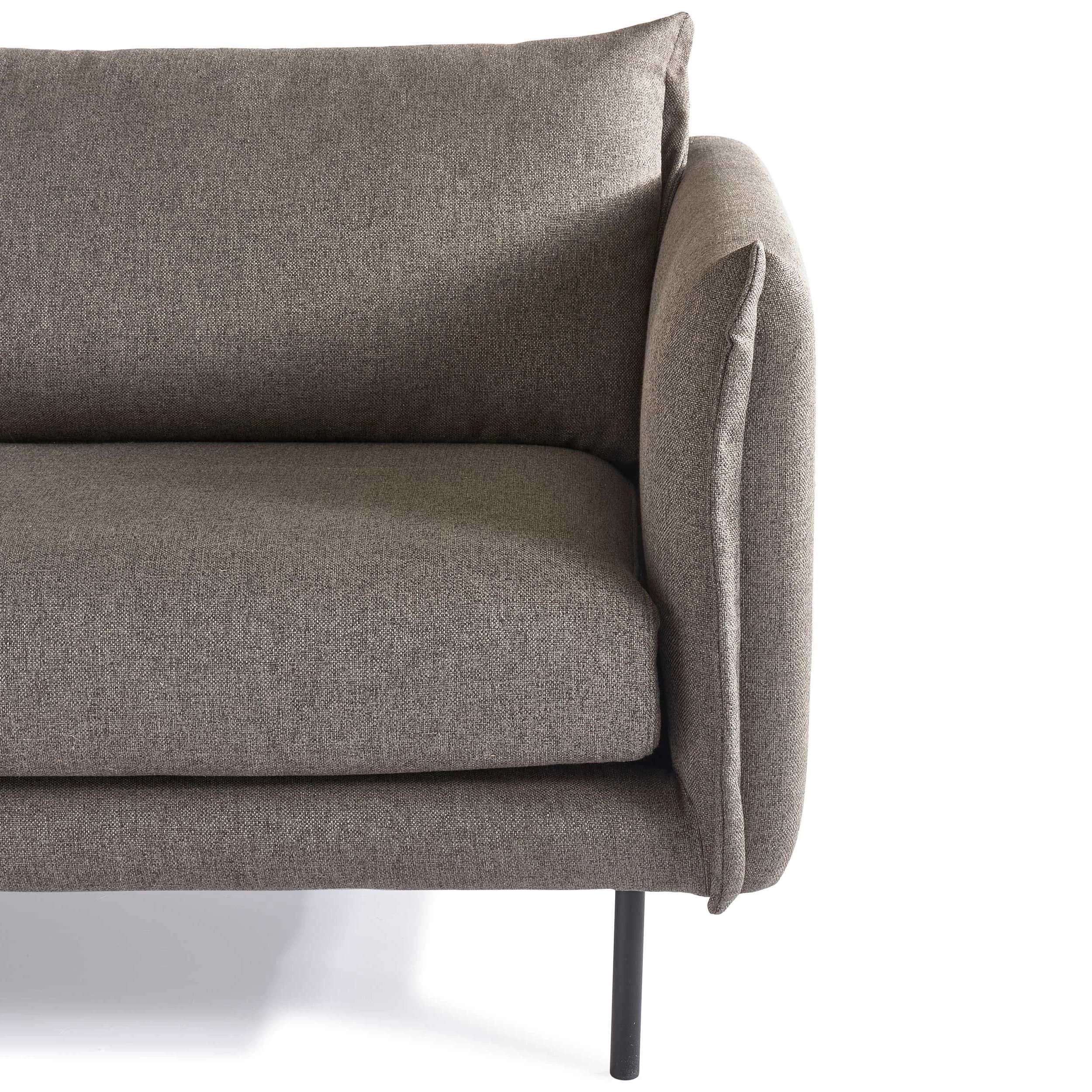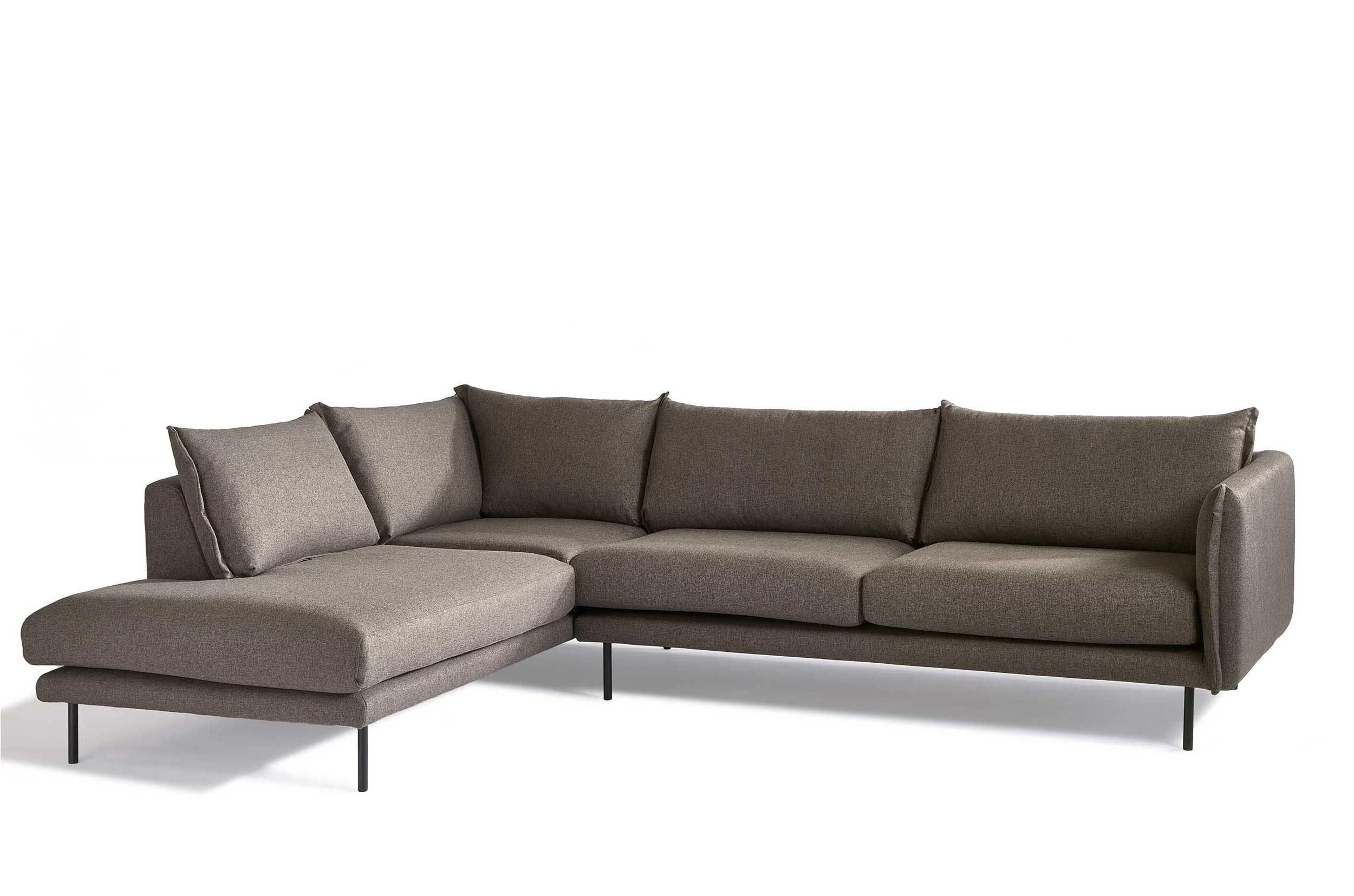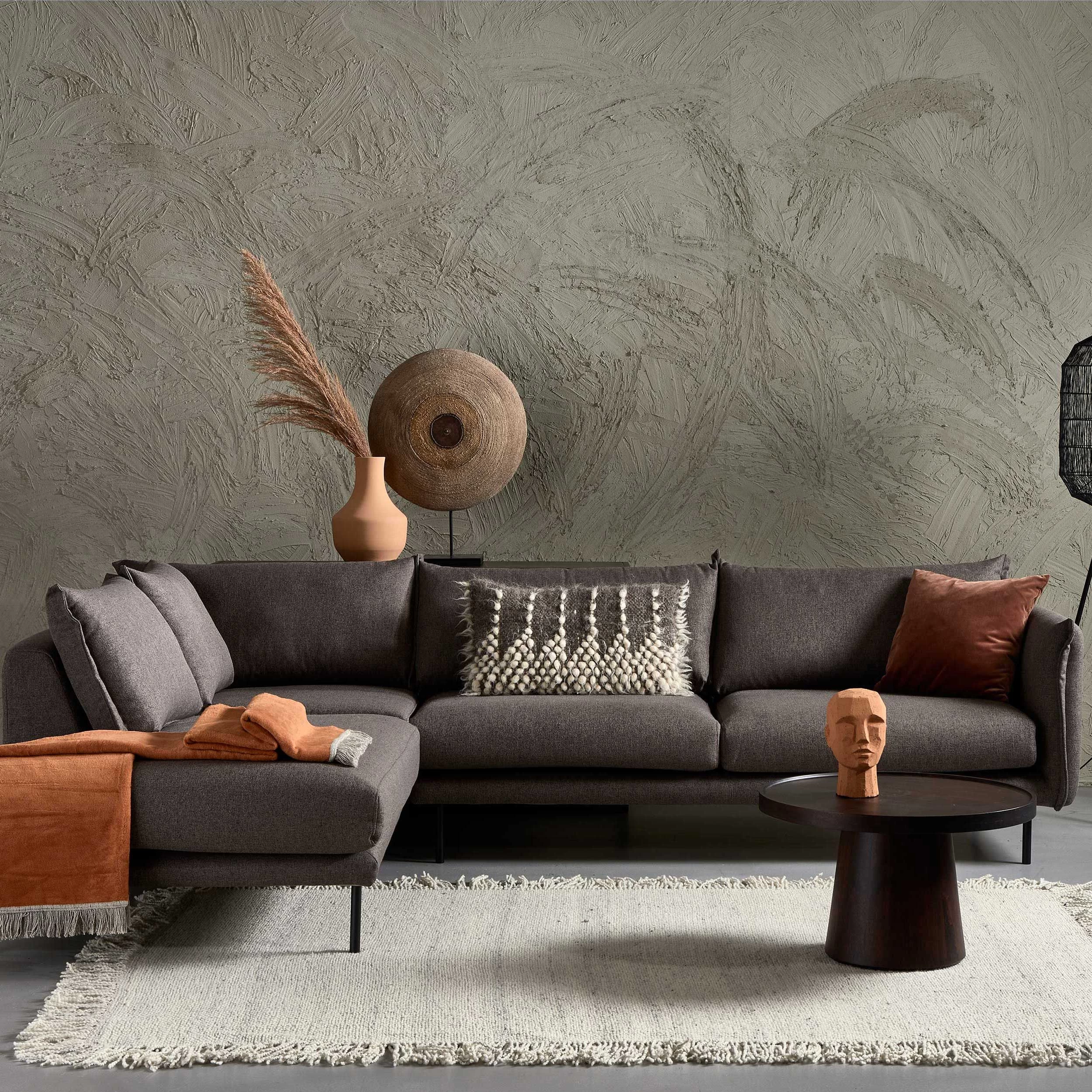 De hoekbank van de Boudi-collectie past in elk interieur dankzij de neutrale grijze kleur. Dit maakt het gemakkelijk om kleurrijke accessoires te gebruiken zoals felrode sierkussens of een gele plaid. Deze hoekbank is gemaakt uit houtvezelplaat met een bekleding van grijze stof en een vulling van schuim. De Boudi-hoekbanken zijn afgewerkt met fijne metalen poten. Je kan deze hoekbank ook in spiegelbeeld verkrijgen op onze website.
