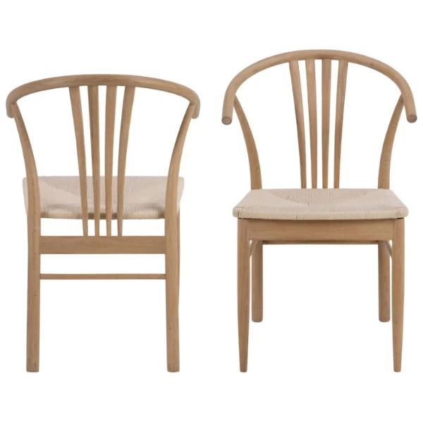 Deze stoel is gemaakt van wit gepigmenteerd geolied eikenhout en heeft een prachtig natuurlijk nerfpatroon dat de algehele esthetische aantrekkingskracht versterkt. De gepigmenteerde olieafwerking beschermt het hout niet alleen tegen dagelijkse slijtage, maar geeft het ook een warme uitstraling, waardoor het een veelzijdige keuze is voor verschillende interieurstijlen.
