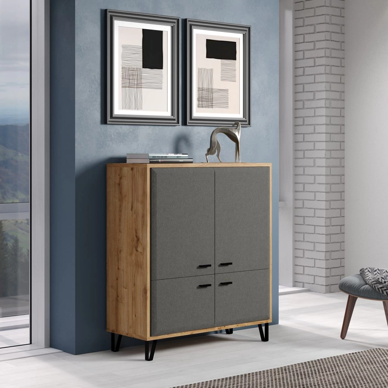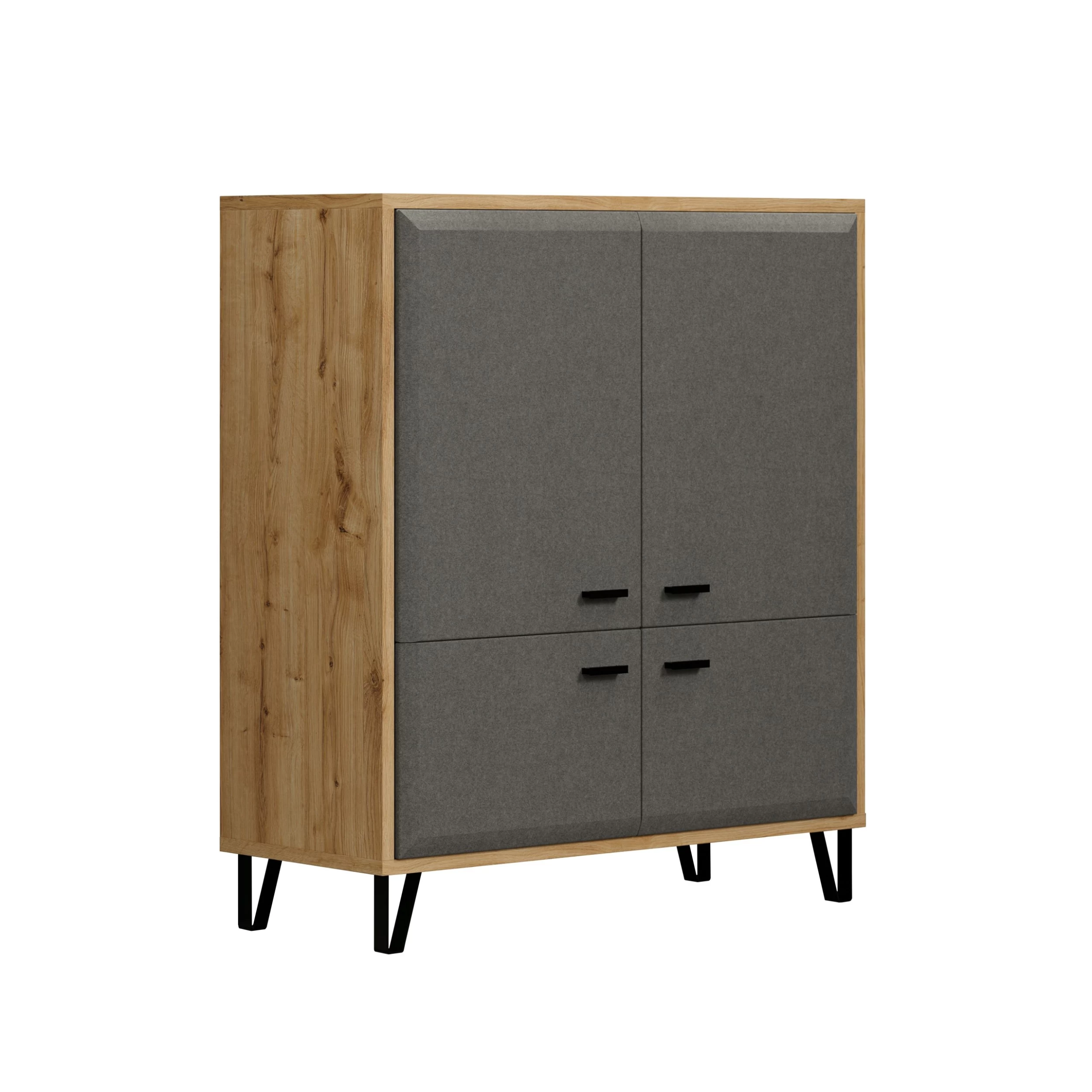 De totale afmetingen van 98 x 42 x 112 cm maken het perfect geschikt voor elke kamer, of het nu je woonkamer, slaapkamer of kantoor is. Ondanks de royale afmetingen biedt het highboard een ruimtebesparende oplossing om je spullen georganiseerd en gemakkelijk toegankelijk te houden.