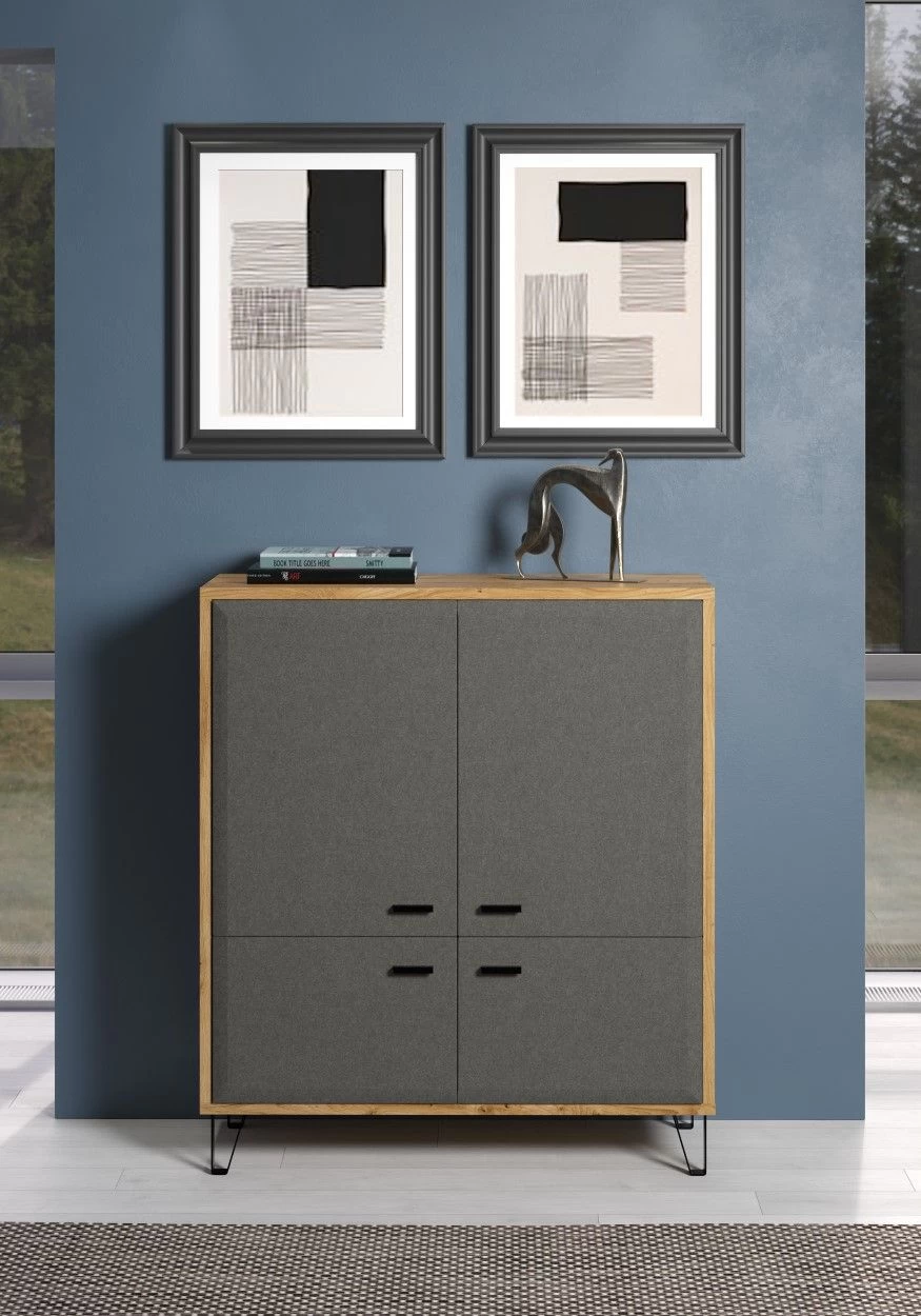 Bovendien zorgt de decoratieve folie in combinatie met melamine ervoor dat het oppervlak van het highboard robuust is en bestand tegen dagelijks gebruik. Dit betekent dat je jarenlang kunt genieten van zijn schoonheid en functionaliteit.