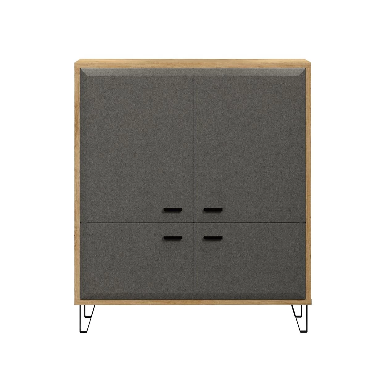 Gemakkelijk te monteren: Highboard met de afmetingen 98 x 42 x 112 cm is zelf te monteren in ongeveer 60 minuten. Met veel opbergruimte kun je je spullen netjes organiseren en binnen handbereik houden. De handgrepen en poten in zwart voegen een vleugje elegantie en verfijning toe aan het algehele ontwerp.